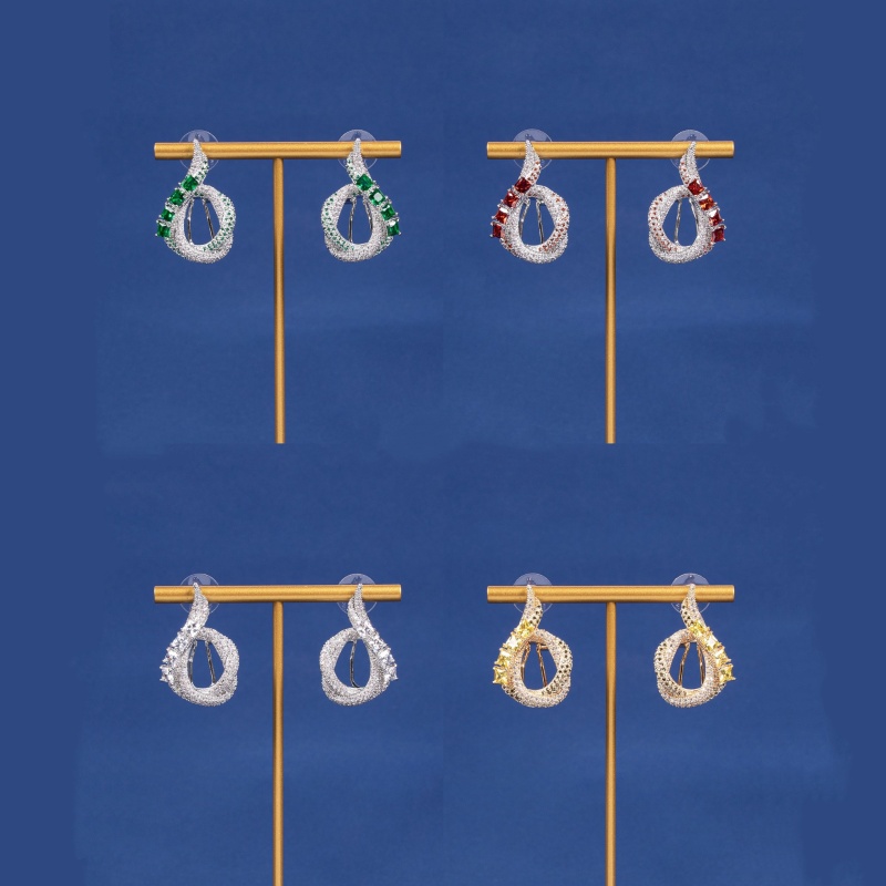 Lonceen präsentiert diese 18 Karat vergoldete Messing-Ohrringe mit gedrehter Schleife und kubischem Zirkonia, entworfen für Frauen, die raffinierten Schmuck schätzen. Jedes Paar verfügt über mehrfarbige oder klare Zirkonoptionen, die sowohl für Freizeitkleidung als auch für elegantes Styling Brillanz bieten.