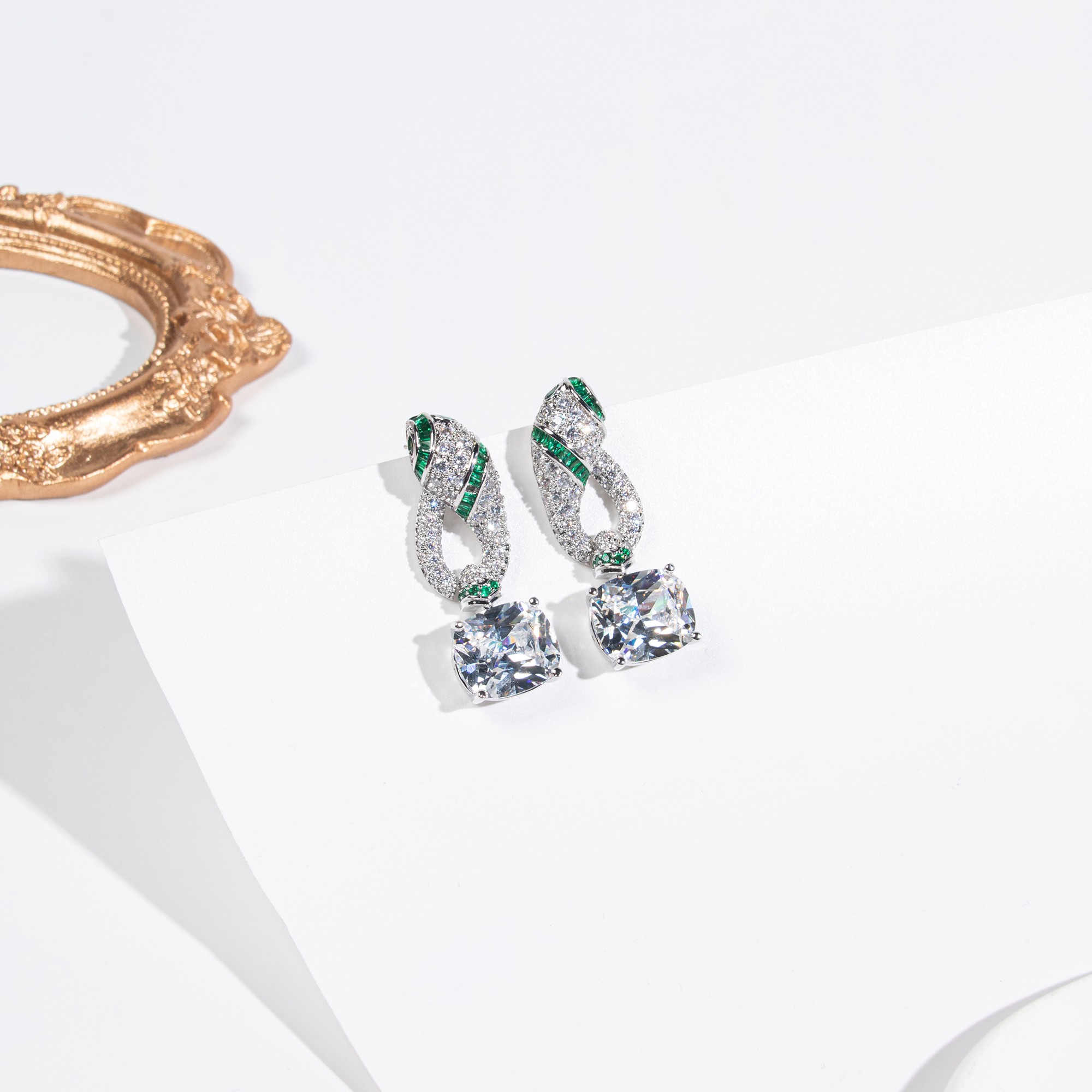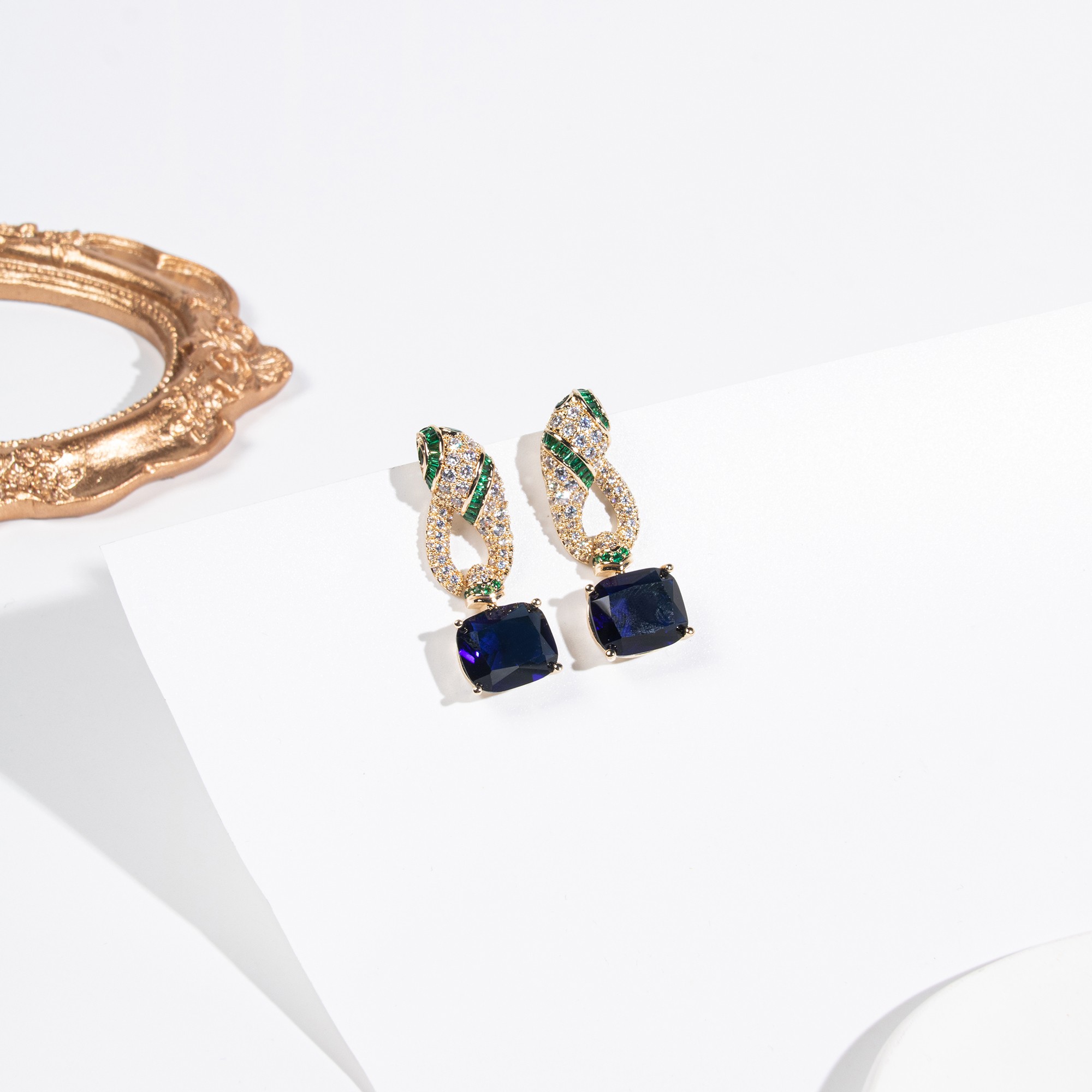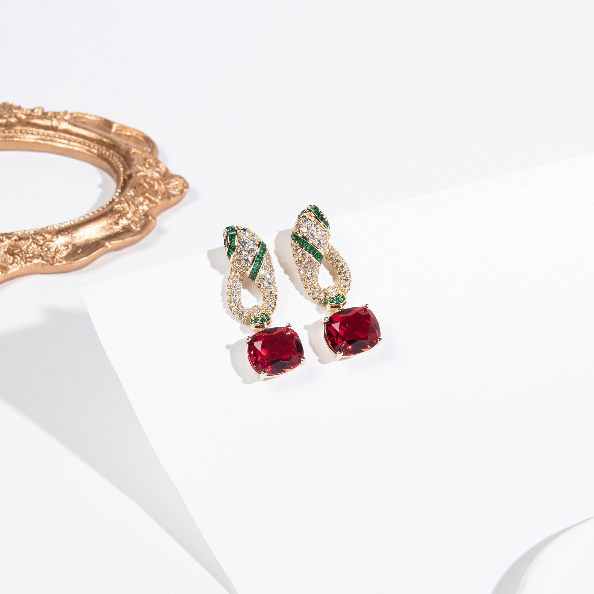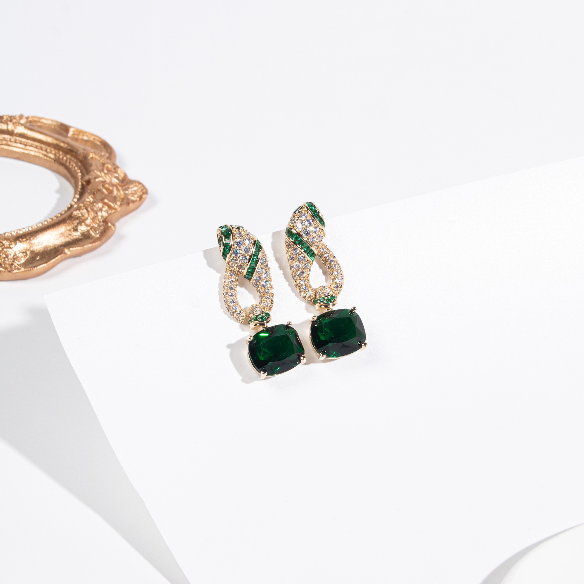 Mehrfarbige quadratische Zirkon-Ohrringe aus 18 Karat vergoldetem Kupfer für Damen