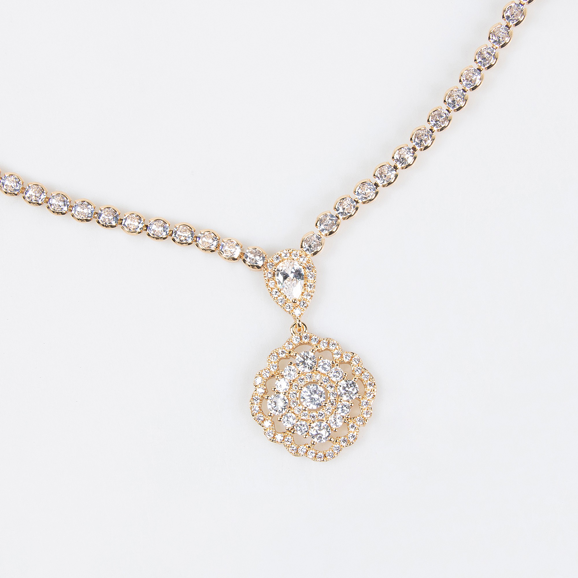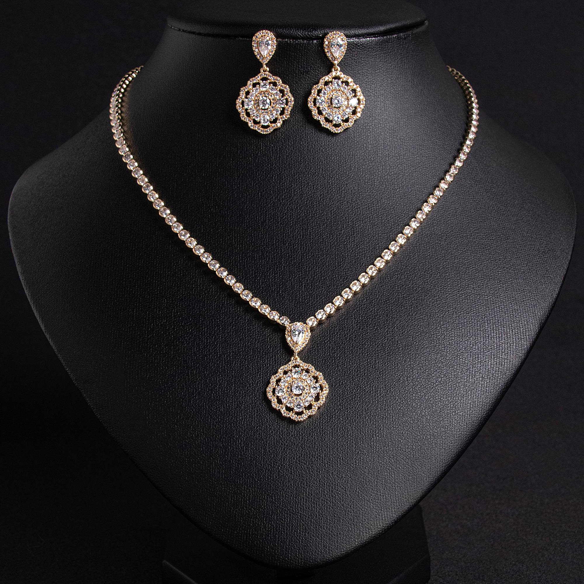 Lonceen presents beautifully crafted bridal jewelry sets designed to elevate every bride’s wedding look. This 18k gold plated brass bridal jewelry set, featuring a refined necklace and earrings, blends elegance with durability for lasting brilliance.
