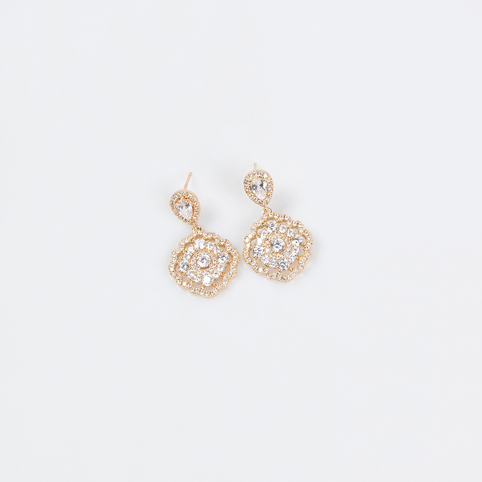 The design draws from classic statement jewelry styles, making it ideal for bridal wear and formal events. The 18k gold plated brass necklace and earring set enhances any gown with graceful sophistication and radiant charm.