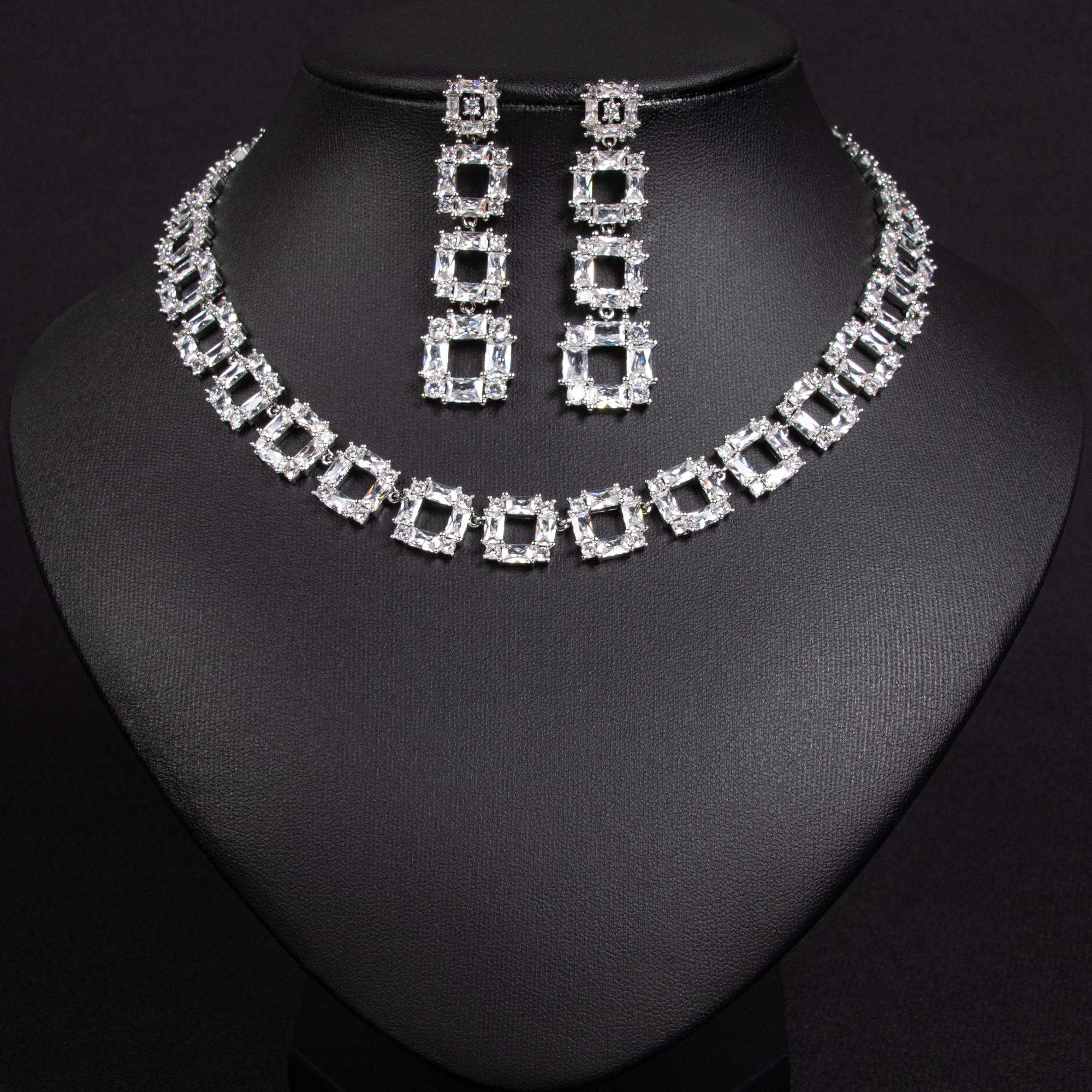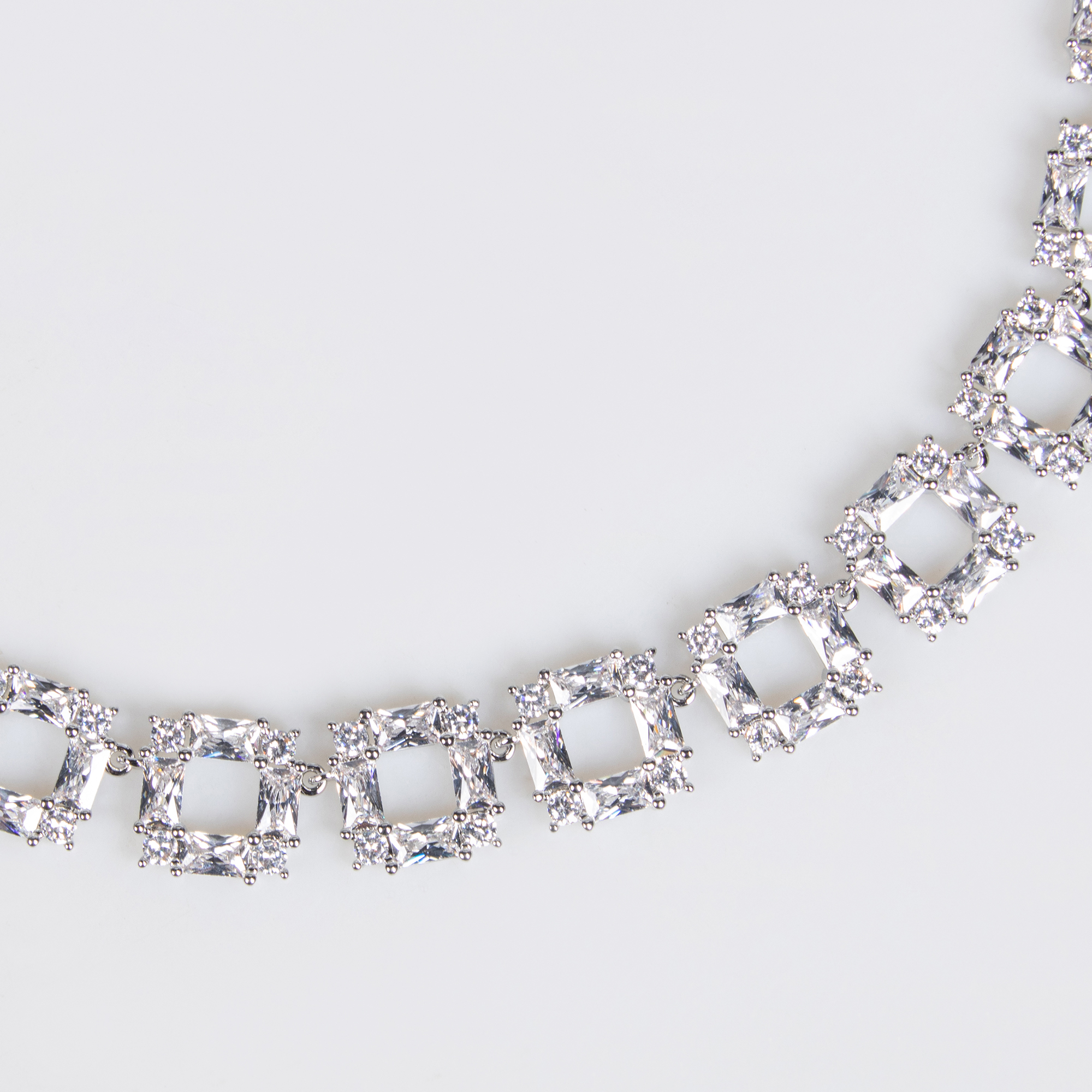 Featuring Women's 18k gold plated brass square openwork crystal collar jewelry set craftsmanship, this piece offers brilliance and durability. Each crystal is carefully set to highlight refined luxury.