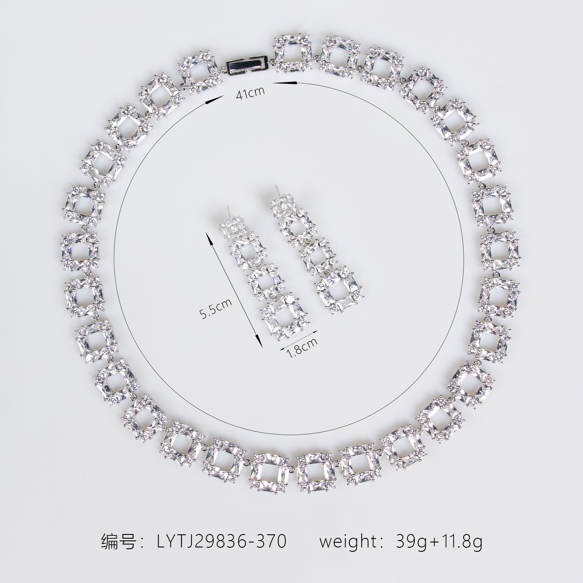 This bridal jewelry set from Lonceen features an 18k gold plated brass openwork square crystal design, offering a modern yet timeless look. Ideal for brides searching for wedding jewelry sets for brides or stylish bridal jewelry sets.