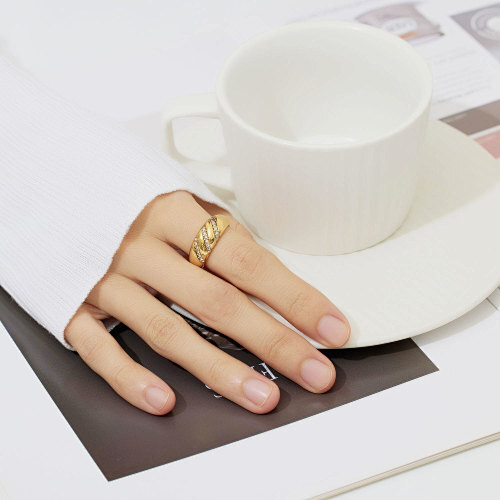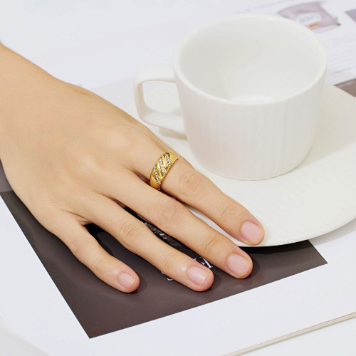 This Lonceen gold twisted zircon ring showcases a sleek blend of polished gold plating and shimmering zircon inlays, delivering a sophisticated, eye-catching look that elevates both casual and stylish outfits. Crafted from high-quality non-oxidizing stainless steel, it boasts excellent anti-oxidation performance, retaining its bright, luxurious luster even after long-term wear. The twisted design adds modern flair, while the embedded zircons catch light vividly—making it a standout accessory for daily wear, office looks, or small gatherings. Its refined style and reliable quality position it as an ideal choice for wholesale.