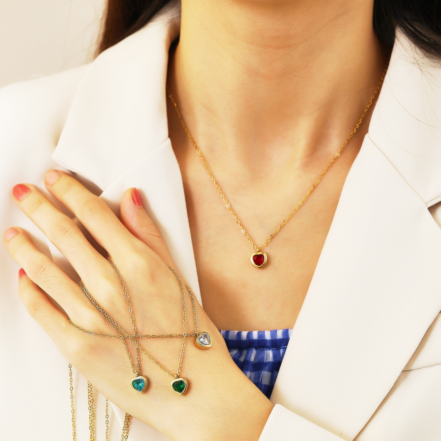 Crafted from high-grade 304 stainless steel with a thick, uniform 18k gold-plated coating via advanced vacuum plating technology, and set with top-tier colored cubic zirconia, this necklace delivers uncompromising durability, tarnish resistance, and long-lasting shine. The gold-plated layer bonds tightly to the stainless steel base, effectively fending off sweat erosion, daily friction, and environmental oxidation to retain a warm, glossy golden luster for years without peeling or fading. The colored cubic zirconia stones are secured with professional micro-prong setting to prevent loosening or loss, and their high color fastness ensures the vivid hues stay bright and saturated even with frequent wear. The stainless steel links boast superior tensile strength and anti-deformation properties, guaranteeing structural stability and reliable, long-term use for daily styling.