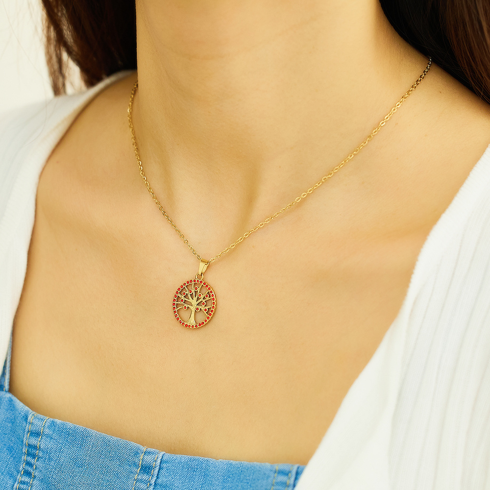 The Lonceen Custom Wholesale Pendants of Multicolor Tree of Life - Stainless Steel, Waterproof, Fashionable Jewelry Necklaces features intricately crafted multicolor tree of life pendants paired with premium waterproof stainless steel chains, blending vibrant aesthetics, symbolic meaning and practical durability for bulk buyers and end consumers. The tree of life pendants adopt a layered structure, with branches inlaid with colorful cubic zirconia or enamel in multiple hues (red, blue, green, purple, etc.) to create a vivid and eye-catching visual effect, symbolizing diverse vitality, rich emotions and harmonious family bonds. It supports personalized custom services, including logo engraving, color matching customization and text engraving on the pendant back, meeting the diversified needs of wholesale channels for brand differentiation and personalized gifting.