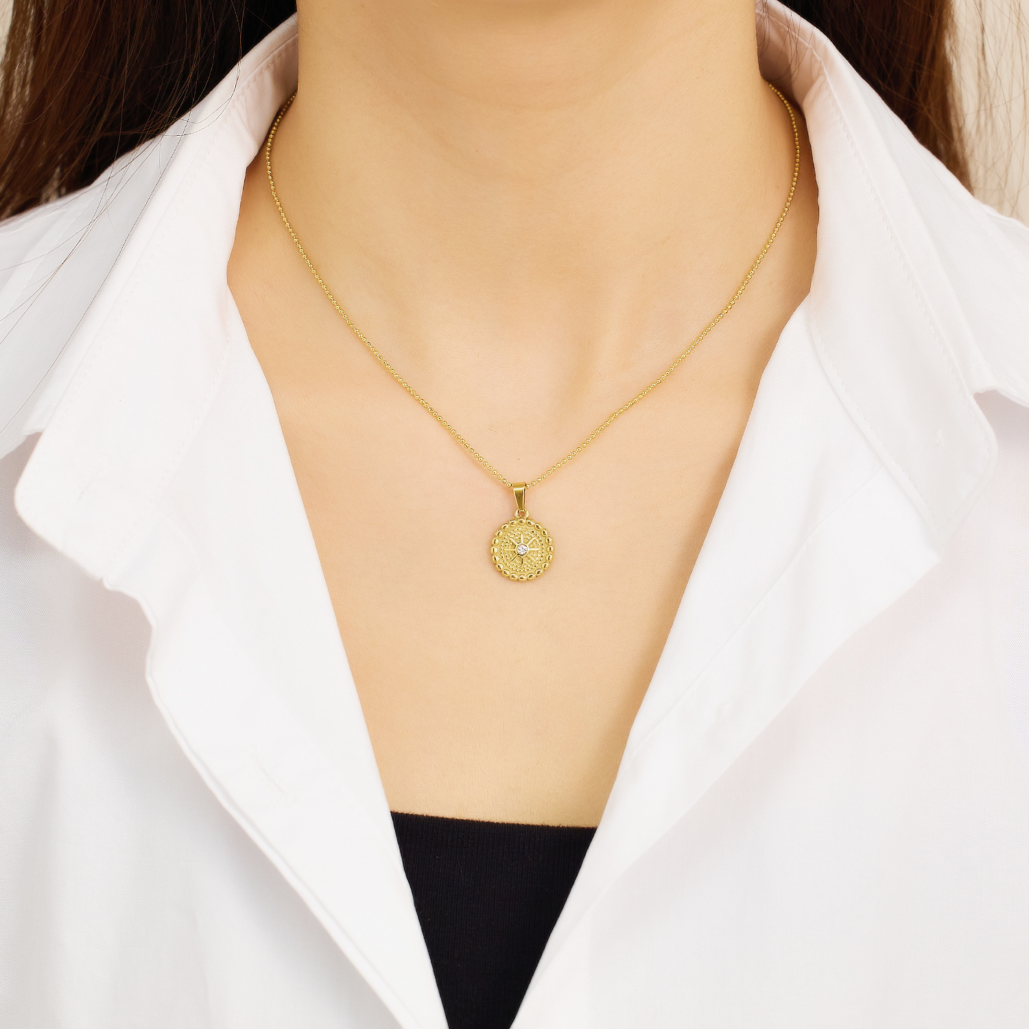 Made of high-grade 304 stainless steel with a thick, uniform gold-plated coating and embedded with top-tier cubic zirconia, this women’s necklace delivers exceptional durability, tarnish resistance, and long-lasting luster. The gold-plated layer adheres firmly to the stainless steel base, resisting sweat erosion, daily friction, and environmental oxidation without peeling or fading, maintaining a warm and glossy golden sheen for years. The selected zircon features excellent light refraction and color uniformity, secured via professional micro-prong or bezel setting technology to prevent falling off. The stainless steel core forms a dense protective oxide film, effectively preventing deformation and rust, ensuring the necklace’s structural stability for long-term wear.