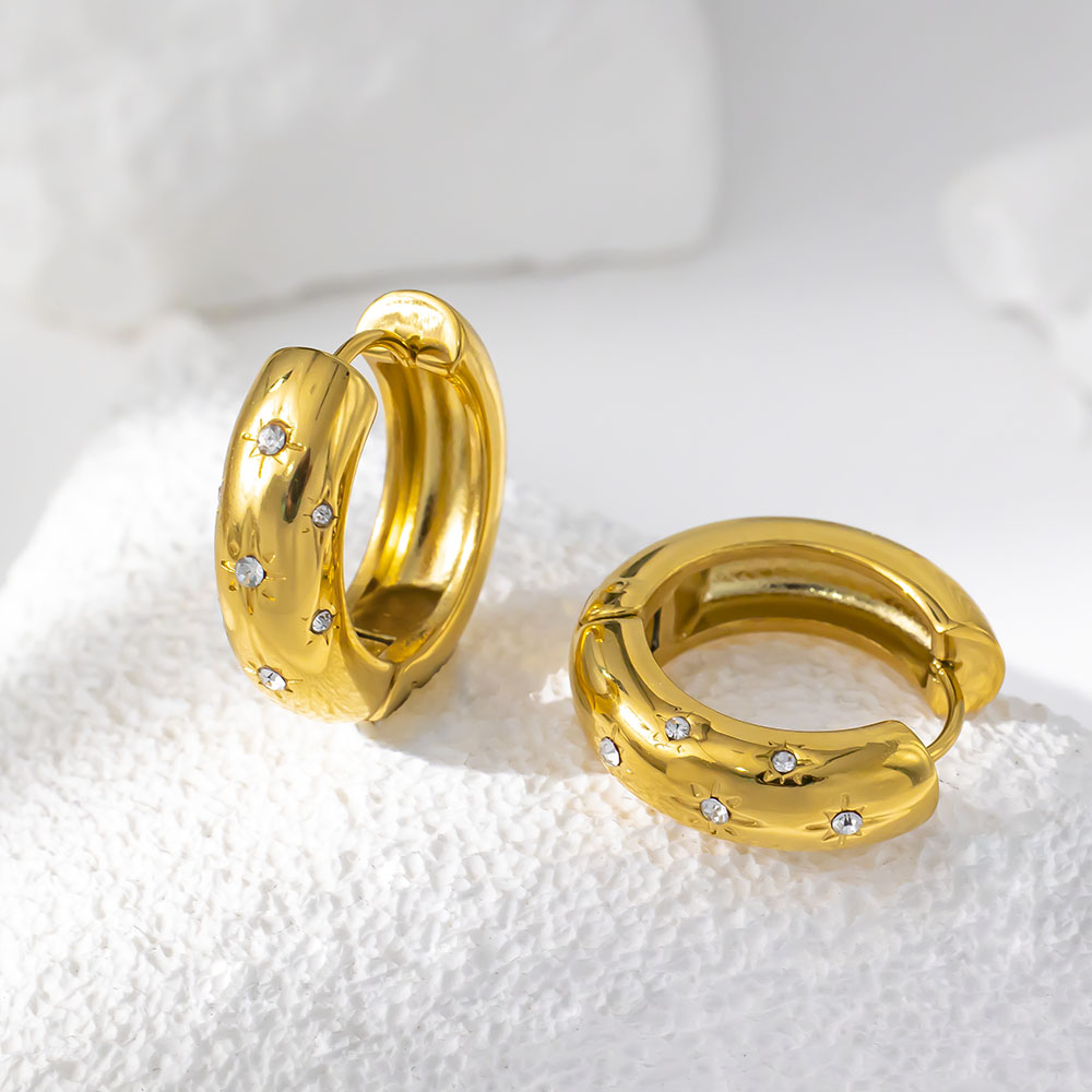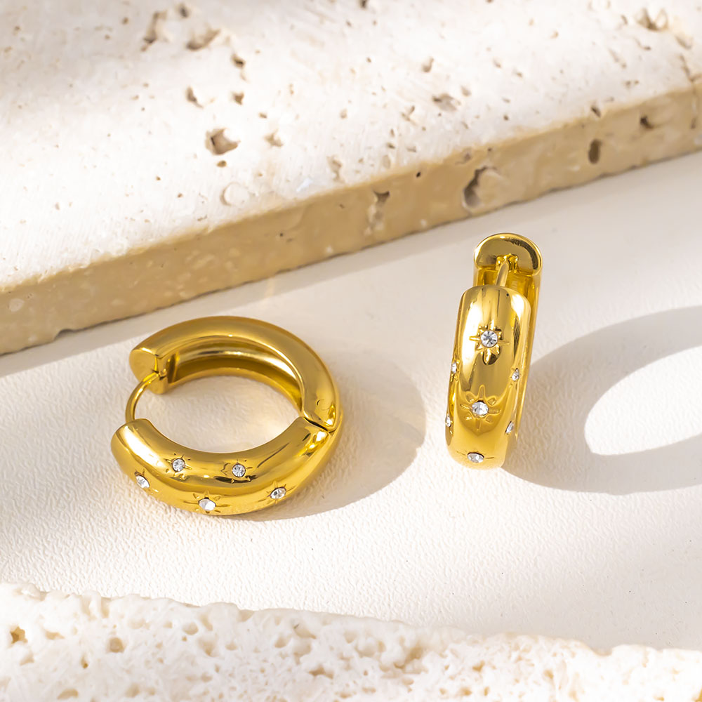 Personalized stainless steel 18K gold plated letter B earrings, available in multiple colors.