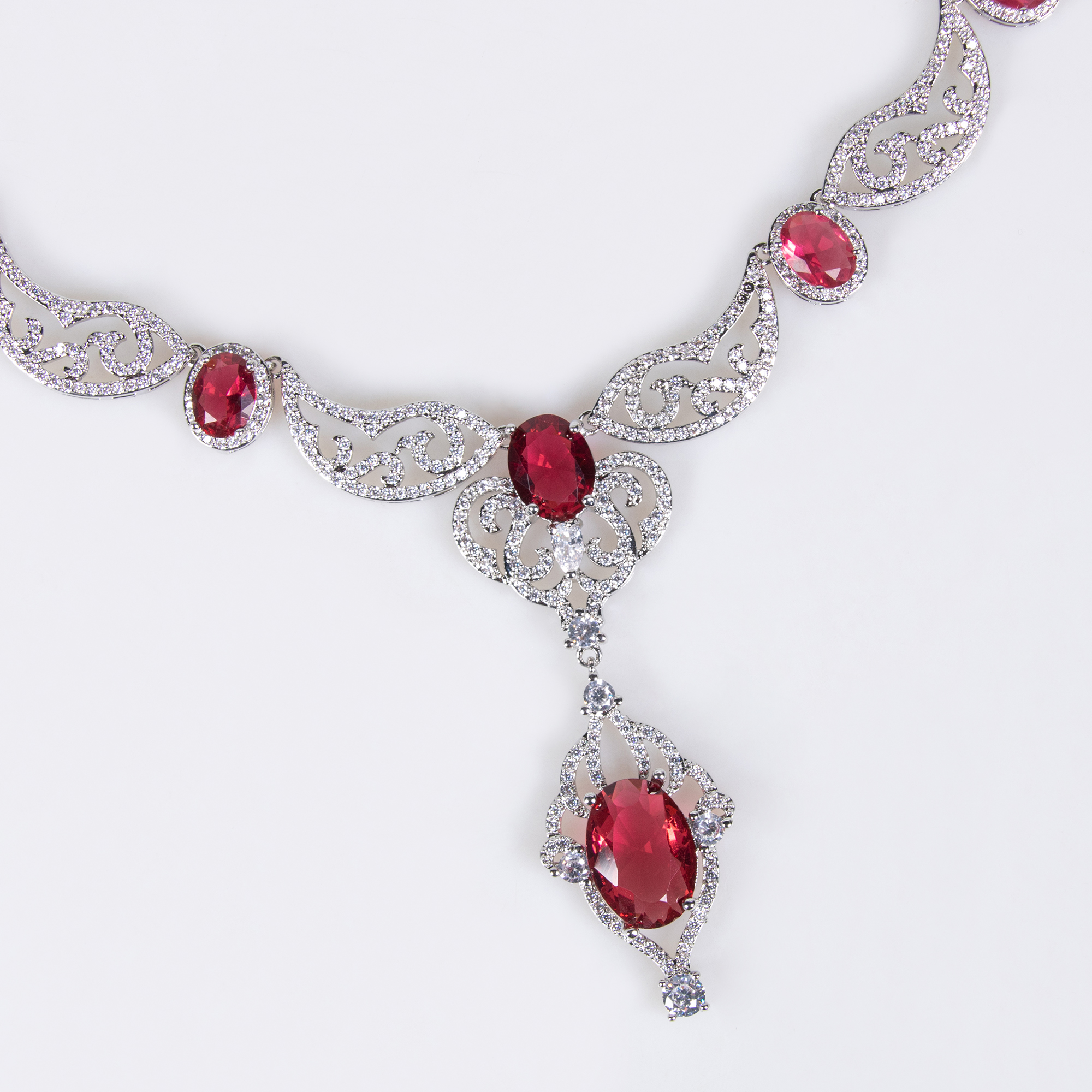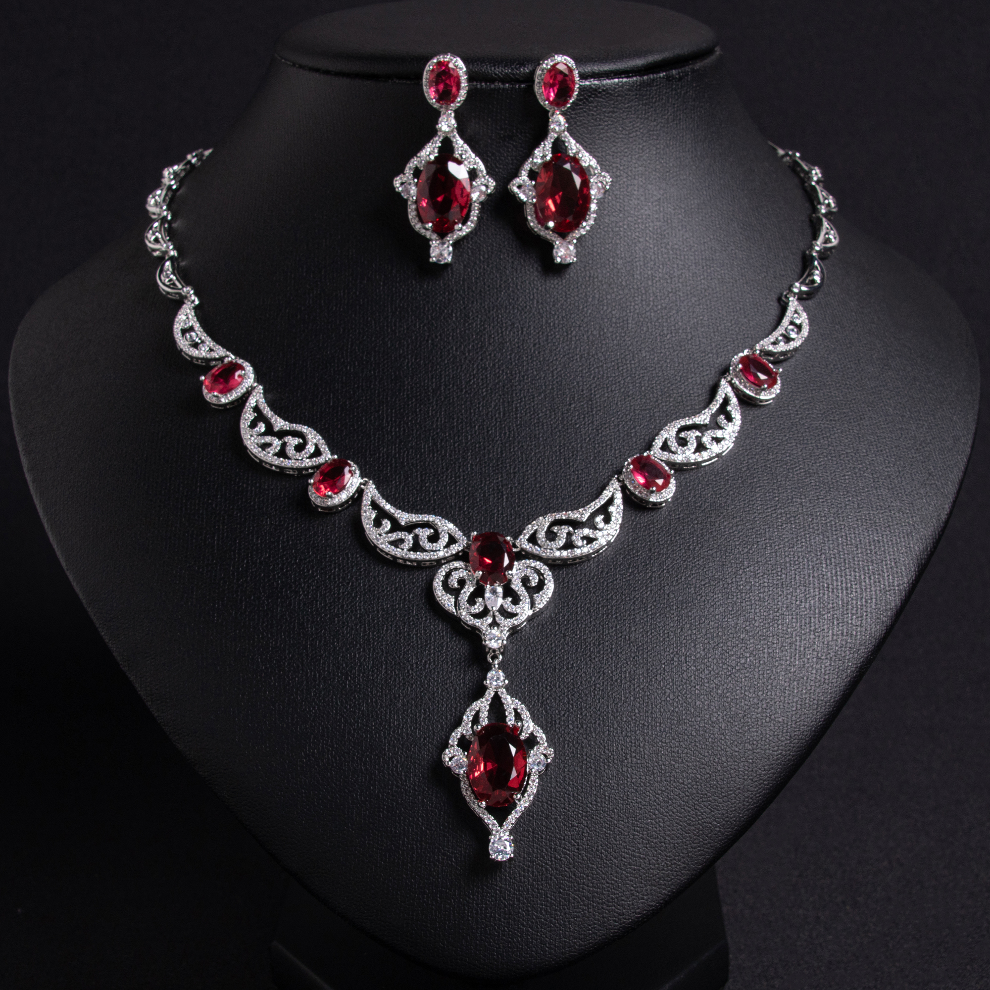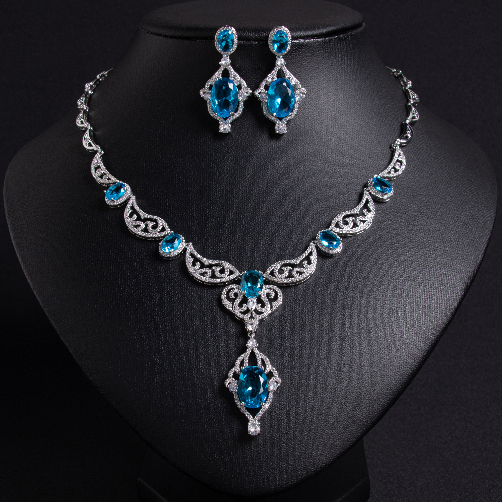This elegant set pairs beautifully with classic and modern gowns, making it ideal not only as a wedding accessory but also for everyday elegant occasions. Whether you choose the red garnet or blue topaz variation, the design ensures lasting charm.