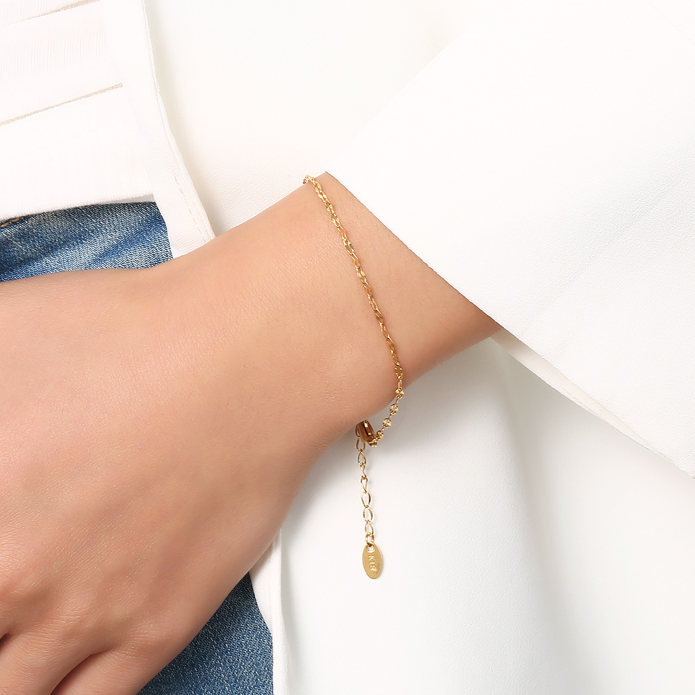 The bracelet boasts a sleek PVD vacuum-plated gold or silver finish on a solid stainless steel base, delivering a luxurious luster that rivals precious metals while resisting tarnishing, fading and scratches even in humid or sweat-prone environments . Its innovative adjustable sliding clasp system (patent-pending elastic adjustment structure) allows for flexible length customization from 15cm to 20cm, fitting most wrist sizes without the need for extender chains . The delicate fine chain silhouette with polished links exudes minimalist elegance, making it a perfect accessory for office commutes, casual dates and formal events, and a versatile staple for both everyday and occasion styling.