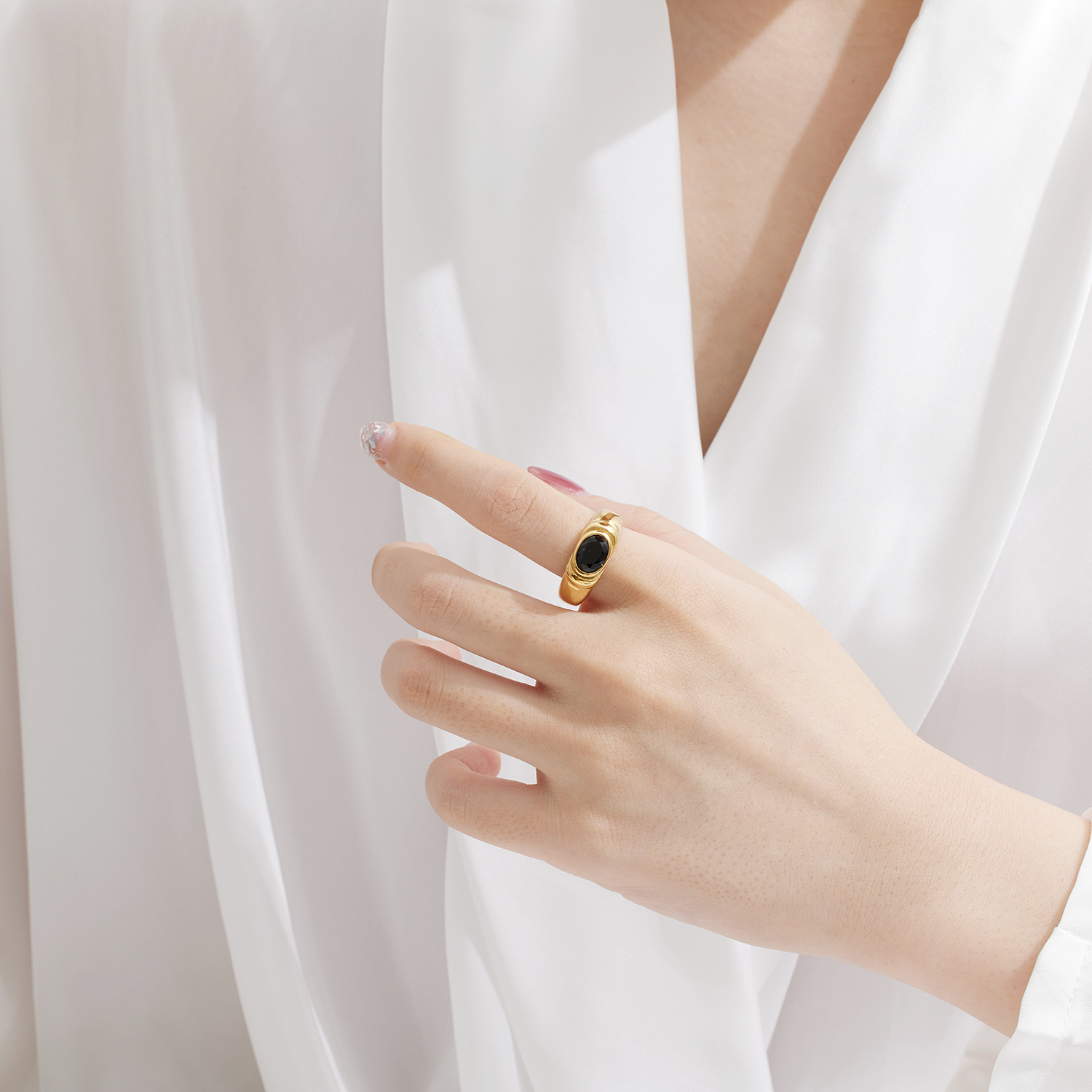 Crafted from high-grade stainless steel, this fashion jewelry ring is built to last. The stainless steel base ensures exceptional sturdiness and resistance to deformation, while the professional multi-layer gold-plating process enhances its corrosion resistance and tarnish resistance. Even with prolonged daily wear, the ring can maintain its radiant shine and bright color, avoiding the trouble of frequent maintenance. The smooth and polished inner band also ensures a comfortable wearing experience, fitting the contour of the finger perfectly without causing any discomfort.