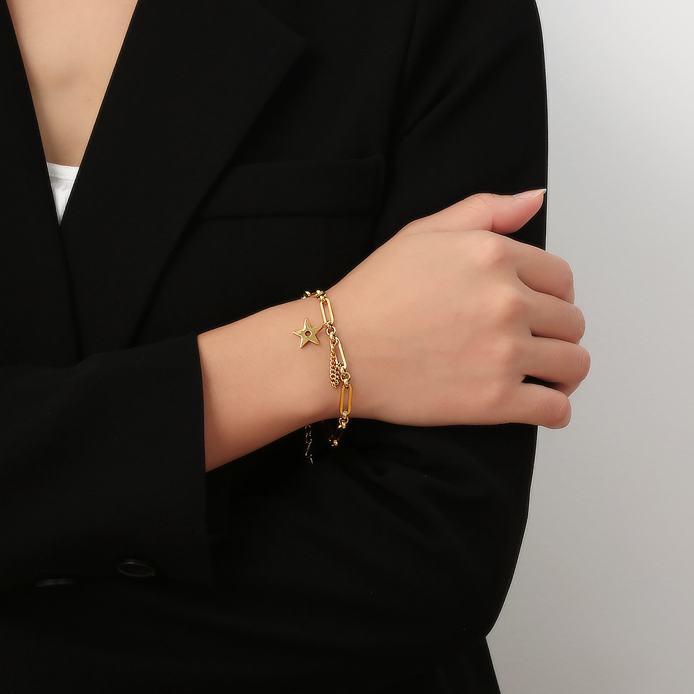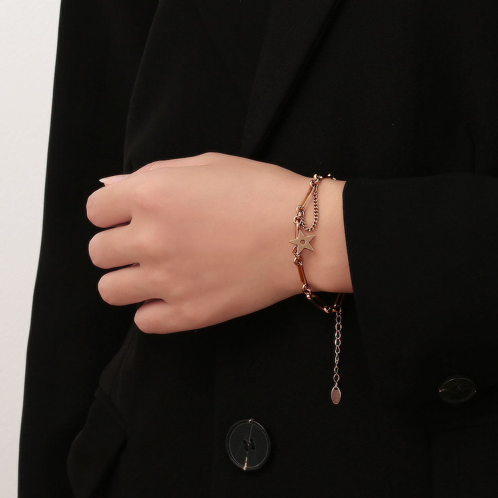 The bracelet boasts a sleek non-oxidizing stainless steel base (with optional PVD gold/silver-tone finish) that resists oxidation, scratches and sweat erosion even in humid environments. Its trendy silhouette—available in twisted links, geometric motifs and minimalist chains—exudes modern charm, while the adjustable lobster clasp (with 4cm extender chain) fits most wrist sizes (15-20cm) comfortably. The combination of non-oxidizing durability and fashionable design makes it a versatile accessory for office commutes, casual outings and weekend gatherings, perfectly complementing both daily casual wear and elegant occasion outfits.