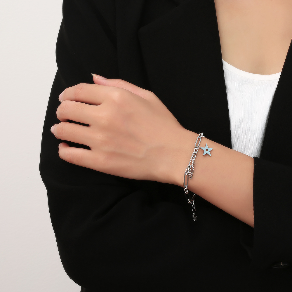 The precision-forged non-oxidizing stainless steel links and stylish decorative details (optional micro-crystal inlays or enamel accents) complement each other, infusing the jewelry with unique charm and long-lasting quality. Unlike ordinary metal bracelets that oxidize and fade over time, this product maintains its brand-new appearance for years with zero maintenance, while the lightweight construction (≤10g) ensures all-day comfortable wearing without wrist fatigue. The bracelet’s sleek lines and glossy finish add a touch of sophistication, making it a must-have for fashion-forward women seeking durable yet stylish jewelry.