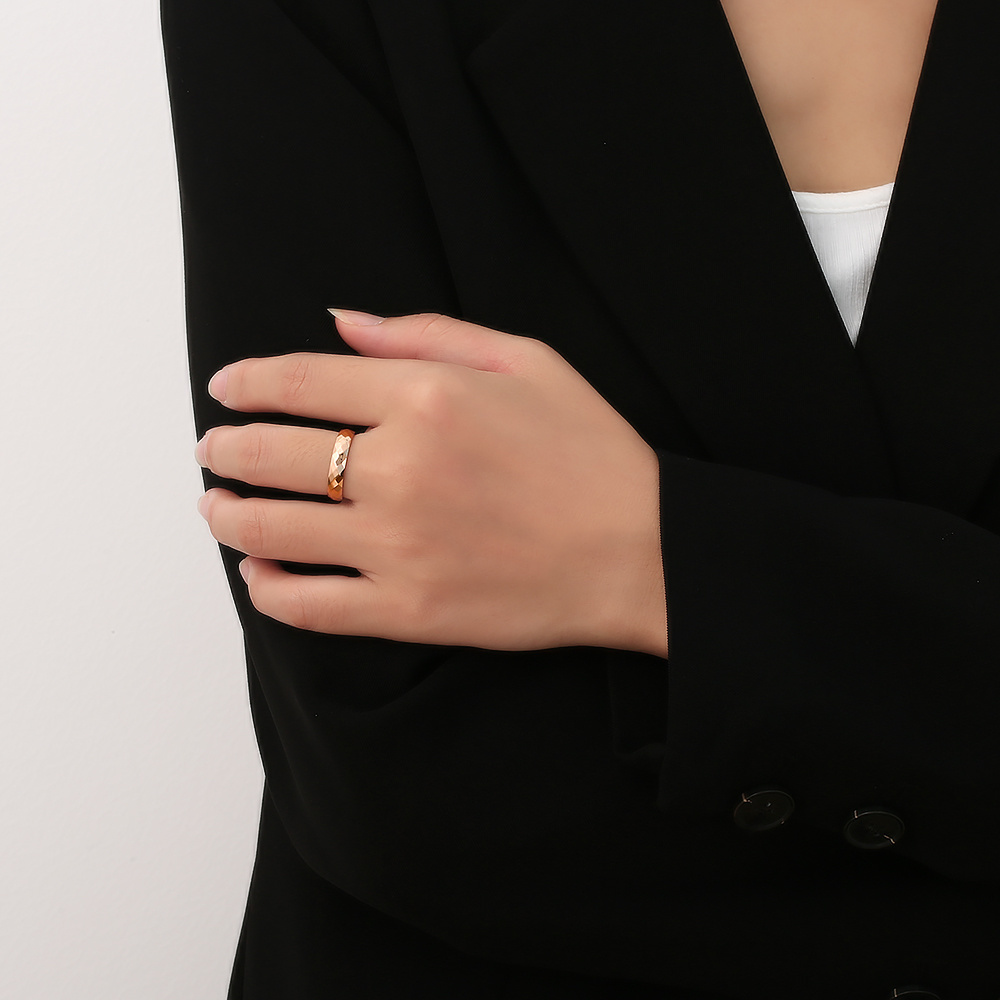 The ring adheres to the design concept of "less is more" and covers a variety of popular simple styles to meet different matching preferences. The 1 - 3mm thin plain band style is a classic choice. Its smooth surface is polished to a mirror - like shine. It can be worn alone to show a low-key temperament, or stacked with other thin rings to create a personalized layered look, which is very suitable for daily office and casual outings. The minimalist geometric style integrates elements such as ellipses and rhombus facets. The edges and corners are rounded and smooth through precise cutting, adding a sense of design without being exaggerated. It is very eye-catching when paired with a minimalist dress. There is also a subtle decorative style. It inlays a small piece of zircon or adopts a faint folded texture on the plain band. It uses subtle brightness and texture changes to enhance the sense of hierarchy, which is suitable for both daily wear and small - scale parties. In terms of color, it provides three classic options: silver, 18k gold-plated and rose gold-plated. The silver color shows the original cool texture of stainless steel, while the gold and rose gold colors add a warm sense of luxury, matching different skin tones and clothing styles.