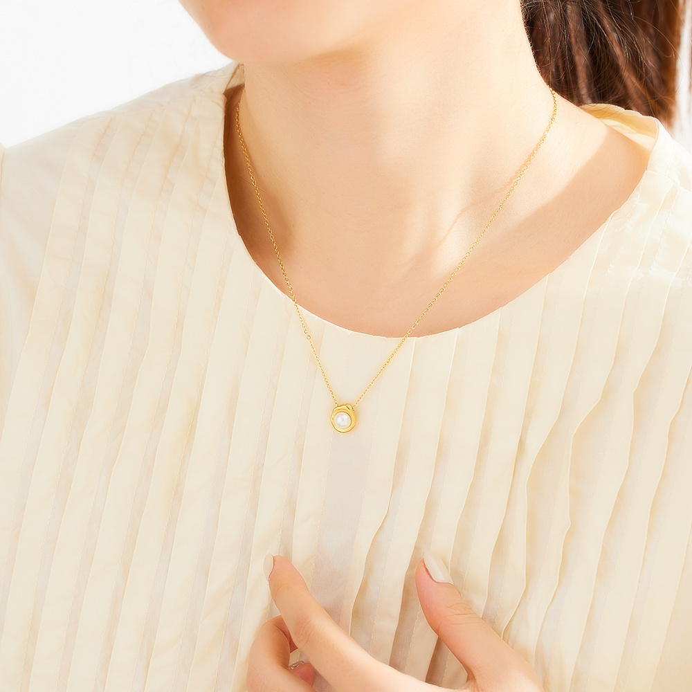 This ladies' necklace is made of high-grade 18k gold-plated stainless steel chain and professional waterproof pearl accessories. The 18k gold-plated layer on the chain is thick and dense, with strong corrosion resistance and wear resistance, which can maintain a bright and lasting luster even in humid environments such as showers and swimming pools. The waterproof pearl has undergone special sealing and anti-corrosion treatment, which is not easy to yellow, crack or lose luster due to water immersion, and is suitable for daily wearing in various environments. The stainless steel chain is sturdy and not easy to break, and the connection between the chain and the pearl pendant is firm and reliable, ensuring the overall durability of the jewelry.