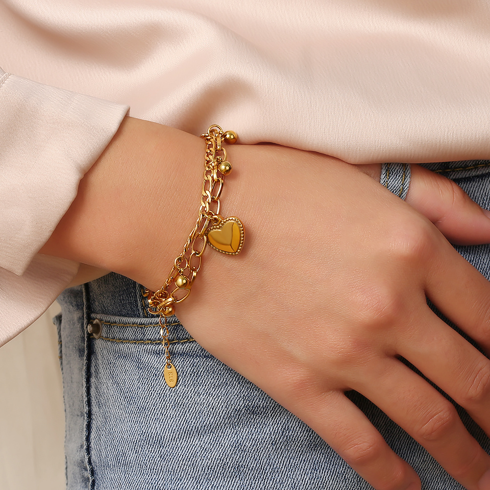 Crafted from premium non-oxidizing stainless steel with a thick gold-plated layer, this chain bracelet bangle offers exceptional tarnish resistance and long-lasting metallic shine. The stainless steel base ensures durability and corrosion protection, while the gold plating adds a luxurious touch that retains its luster even with daily wear, eliminating frequent maintenance for users.