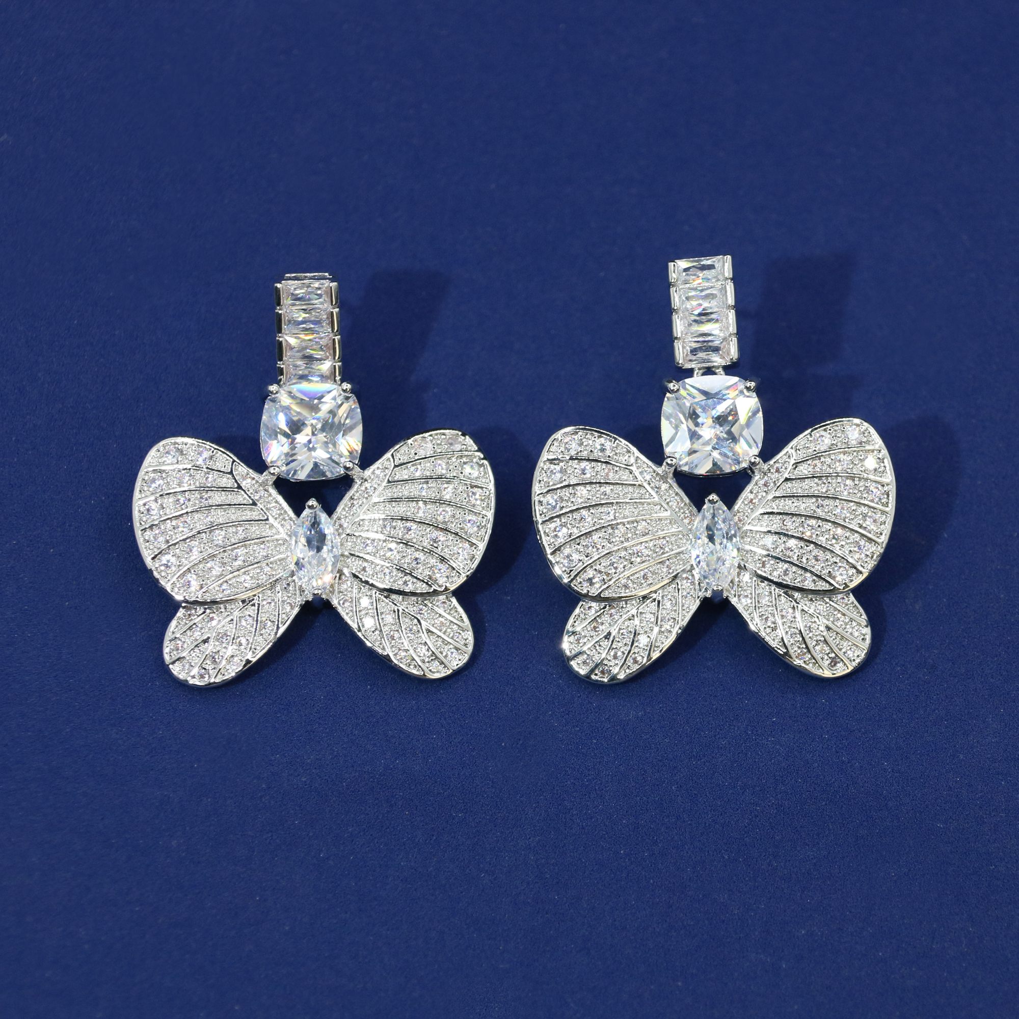 Estos aretes para mujer presentan un delicado colgante de mariposa con detalles en circonita cúbica. La refinada silueta de gota realza las líneas faciales, lo que los convierte en aretes colgantes ideales tanto para uso diario informal como para eventos formales.