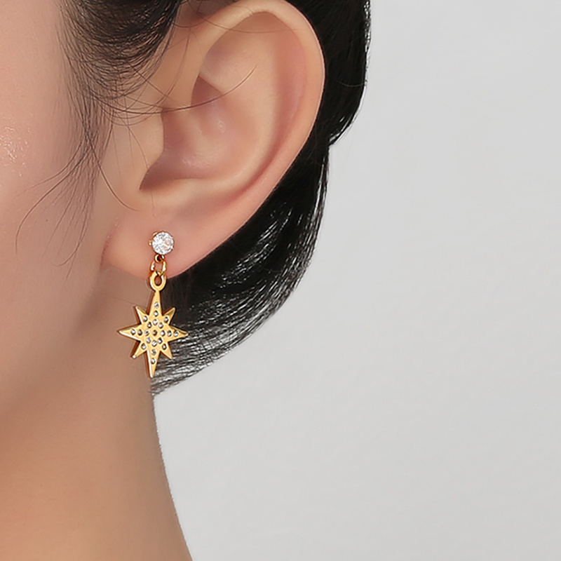 Hechos de acero inoxidable de alta calidad, los aretes tienen una excelente resistencia a la corrosión y a los rayones, lo que garantiza un uso prolongado sin deformaciones ni daños. La superficie está chapada con una capa de oro de alta calidad, que no solo brinda un brillo dorado brillante y llamativo, sino que también tiene un buen rendimiento de retención de color, no se desvanece ni cambia de color fácilmente. La combinación de acero inoxidable y baño de oro garantiza la durabilidad y la moda de los pendientes, haciéndolos adecuados para el uso diario a largo plazo.