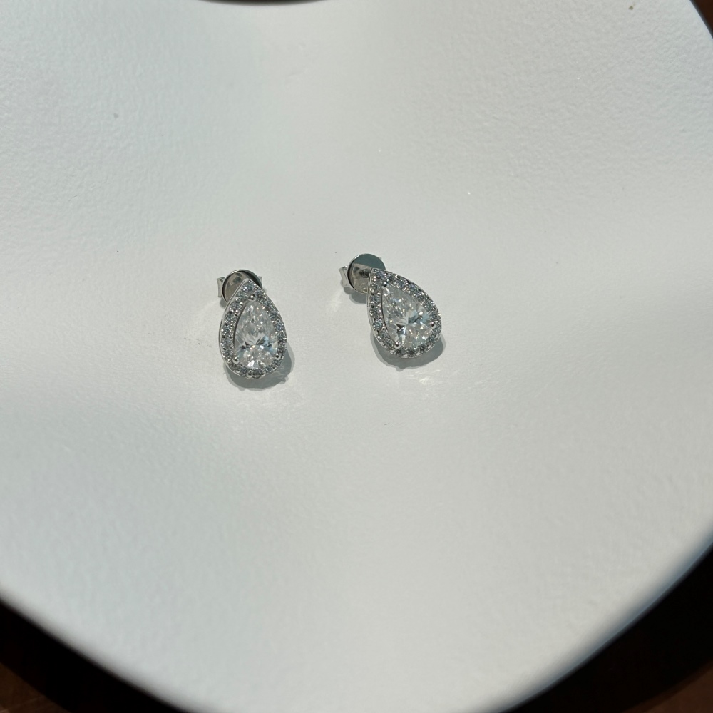 These 925 silver pear cut moissanite stud earrings offer a brilliant sparkle with their sophisticated pear-cut design. The clarity and brilliance of the moissanite stones rival diamonds, making them a luxurious yet affordable choice for any jewelry collection.