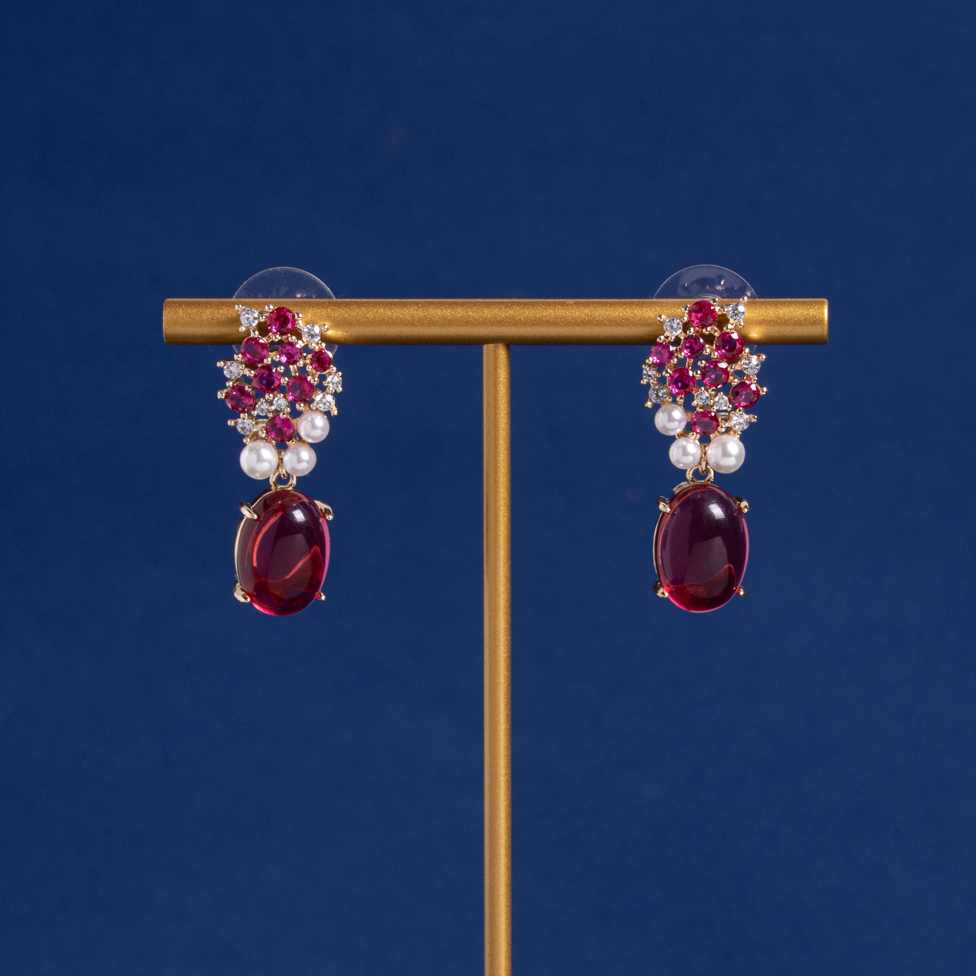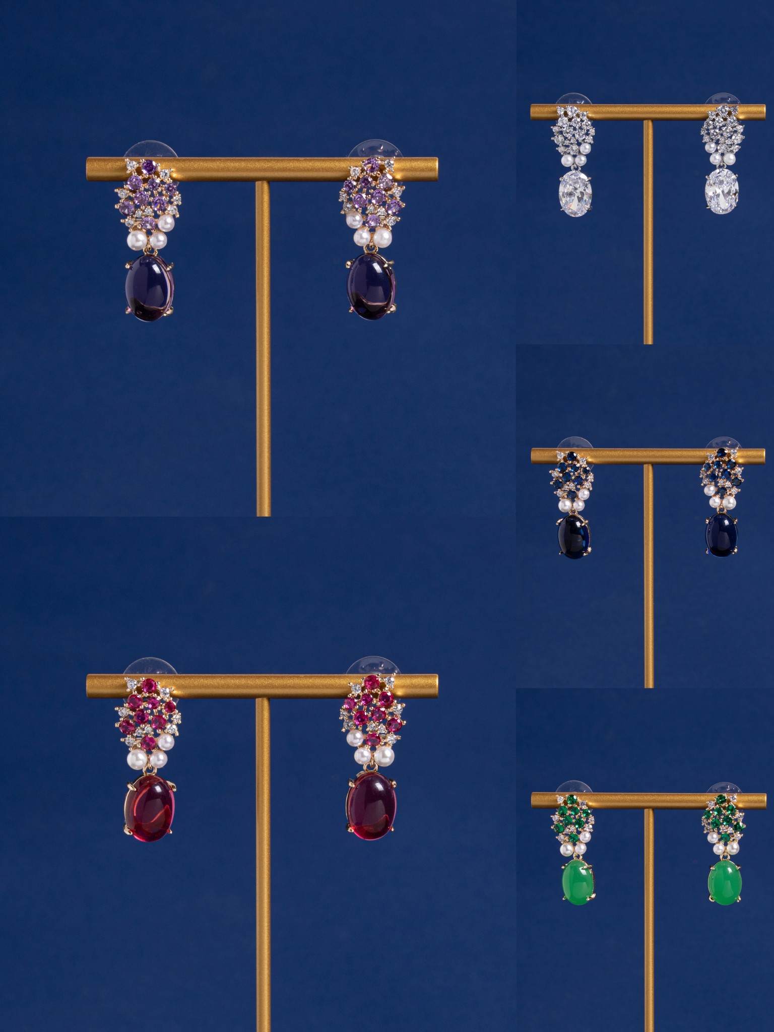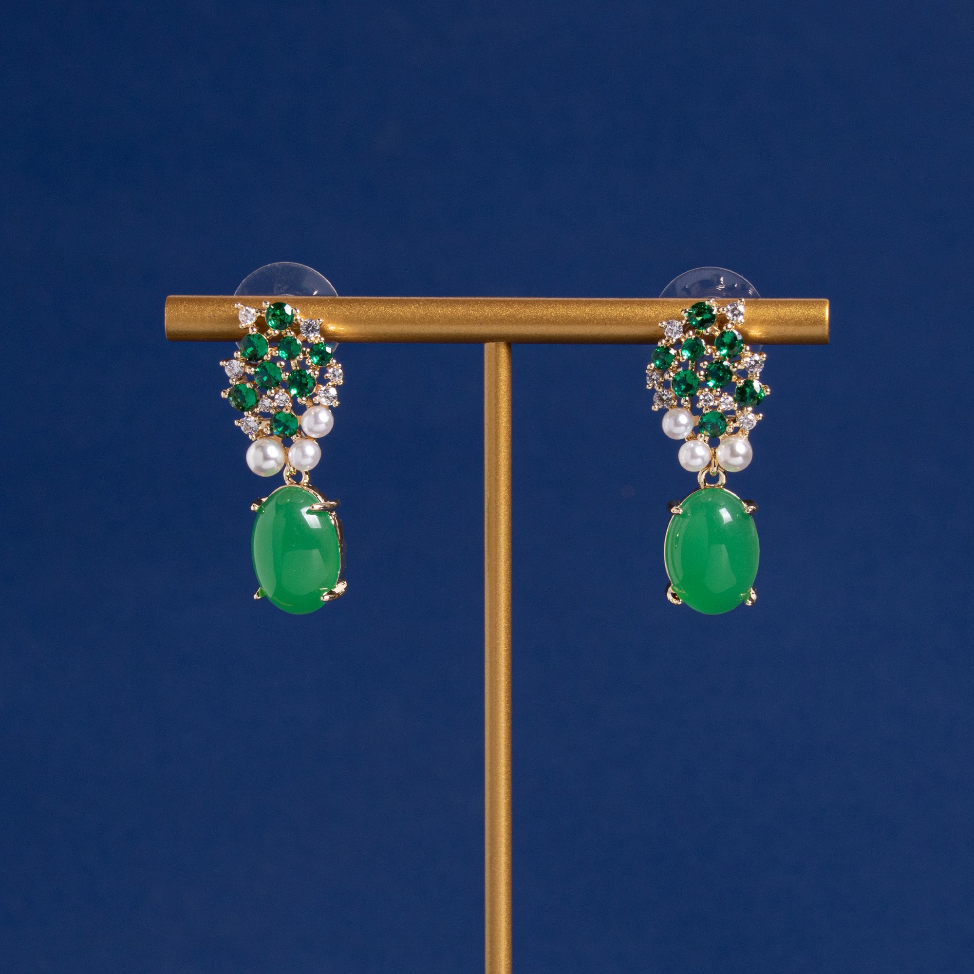 Ornées de perles de zircon de couleurs assorties, ces boucles d'oreilles ovales en zircon, rehaussées d'un zircon central ovale, incarnent l'élégance. Leur finition en cuivre plaqué or 18 carats leur confère une brillance exceptionnelle, les rendant idéales pour les grandes occasions.