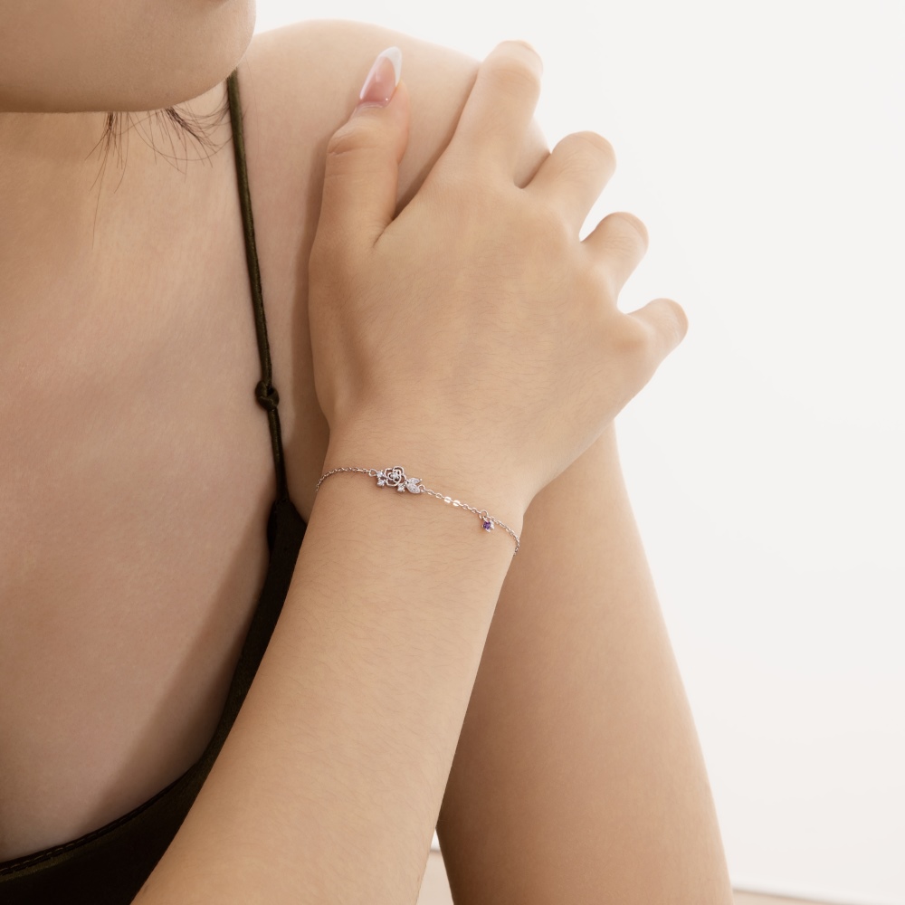 Ce bracelet papillon en argent 925 et moissanite est orné de minuscules pierres semblables à des diamants qui subliment la réflexion de la lumière. Son design allie délicatesse et présence, ce qui le rend idéal pour les femmes en quête d'un luxe discret.