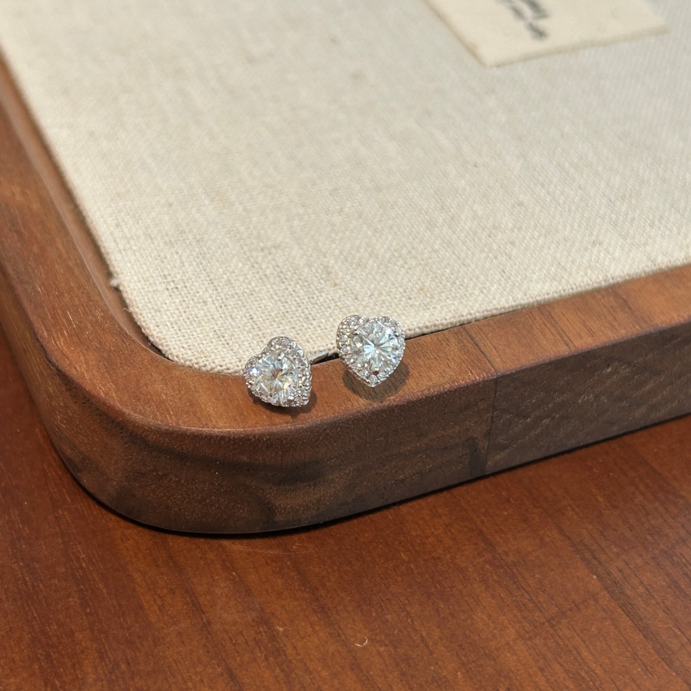 Crafted from high-quality 925 sterling silver, these heart stud earrings ensure durability and long-lasting wear. The moissanite stones, known for their diamond-like sparkle, add a touch of luxury to everyday accessories, making them perfect for any jewelry collection.