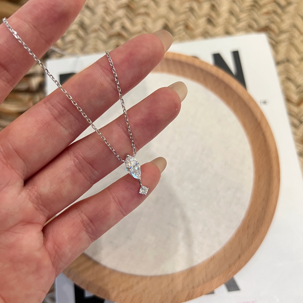 Ce collier est réalisé en argent massif 925 et présente un sertissage raffiné en forme de larme. Le collier en argent 925, orné d'une moissanite et d'un double diamant en forme de larme, rehausse l'éclat tout en restant élégant et facile à porter.