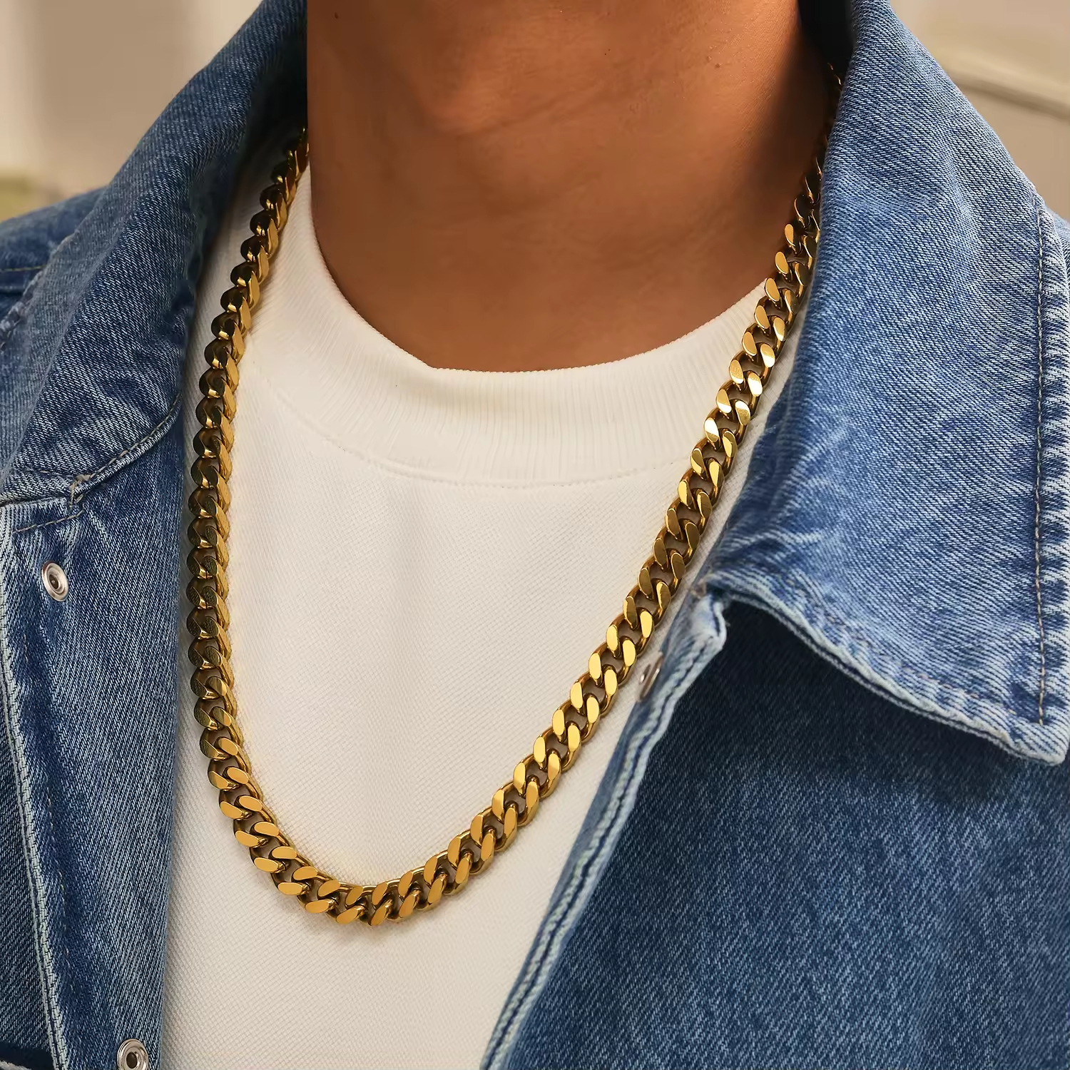 Collier pour homme, style hip-hop, maille cubaine, acier inoxydable plaqué or 18 carats, épais, accessoire de mode