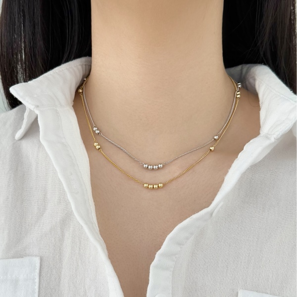 Collier Lonceen en argent 925 plaqué 18 carats avec nœud en zircon et chaîne en argent à plusieurs rangs