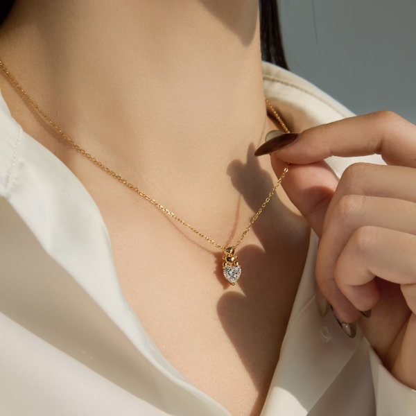 Collier pendentif cœur en argent 925 plaqué 18 carats Lonceen avec chaîne en argent