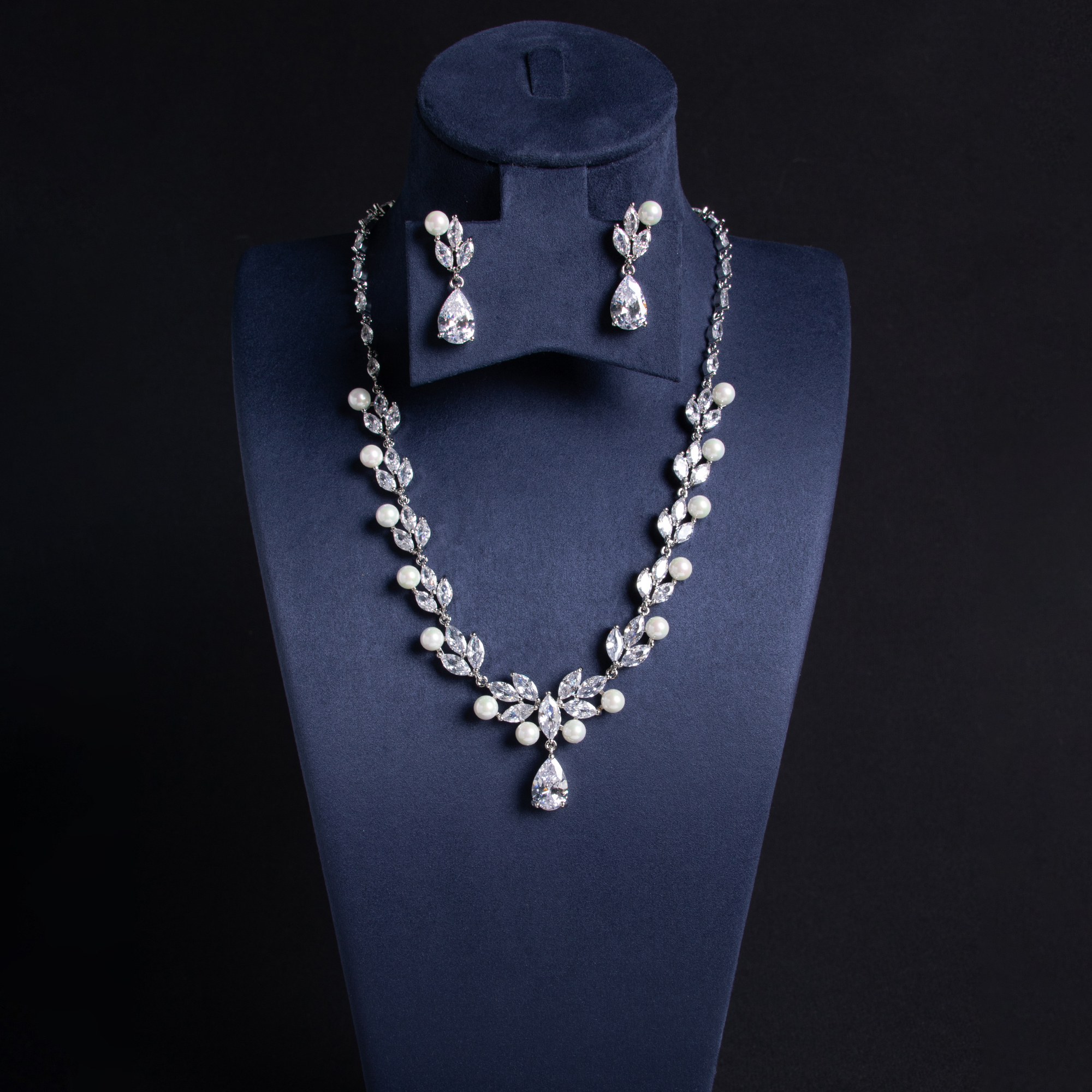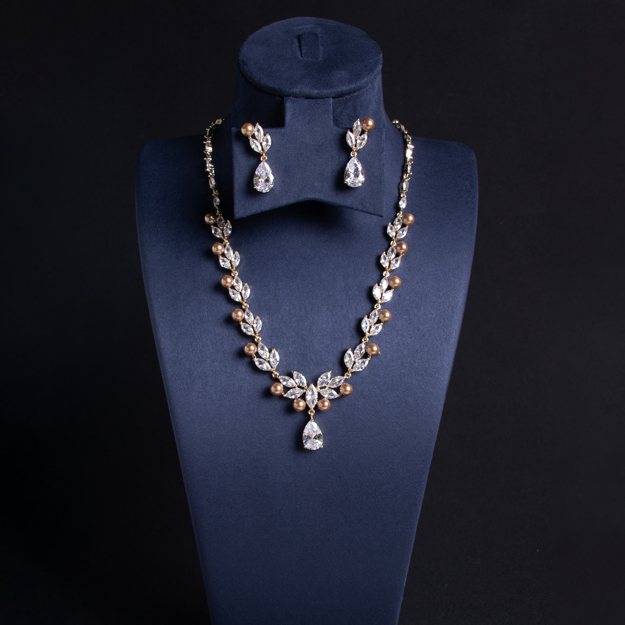 La parure de bijoux en perles de luxe Lonceen présente des créations originales réalisées par des artisans qualifiés. Le précieux collier de perles qui la compose témoigne de notre engagement, en tant que fabricant professionnel, à proposer des bijoux uniques et élégants.