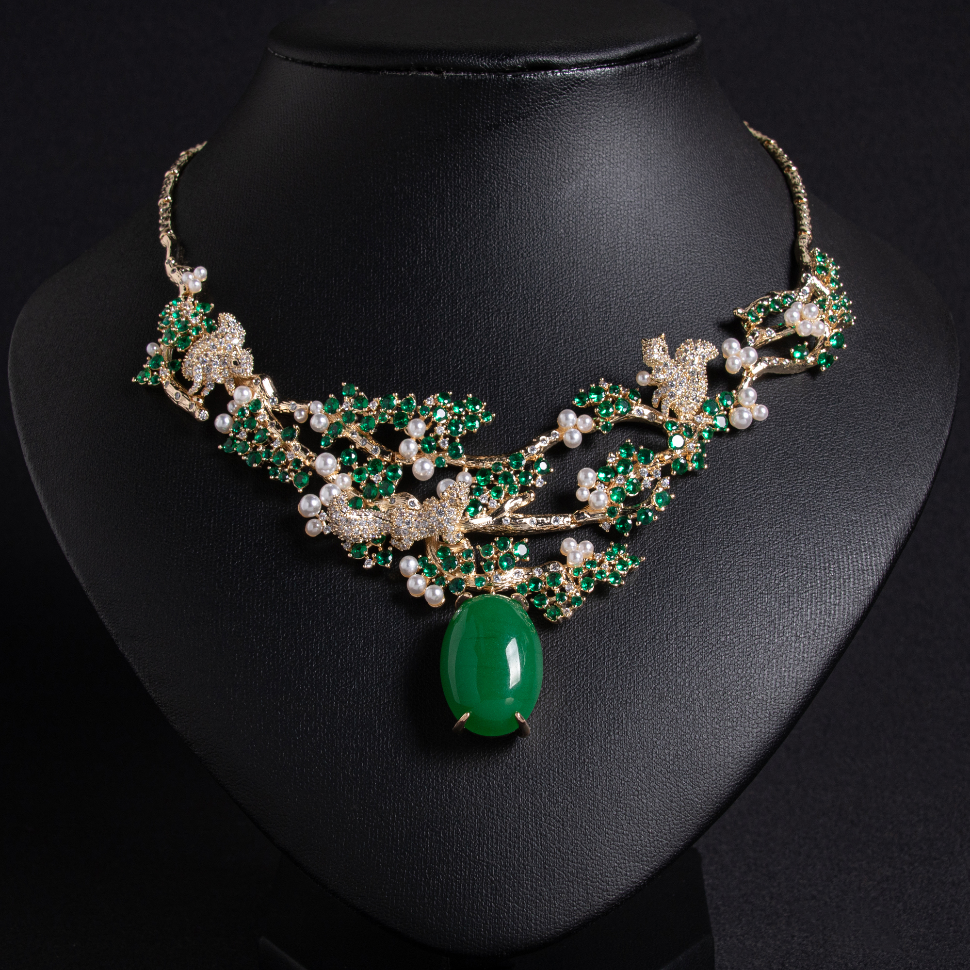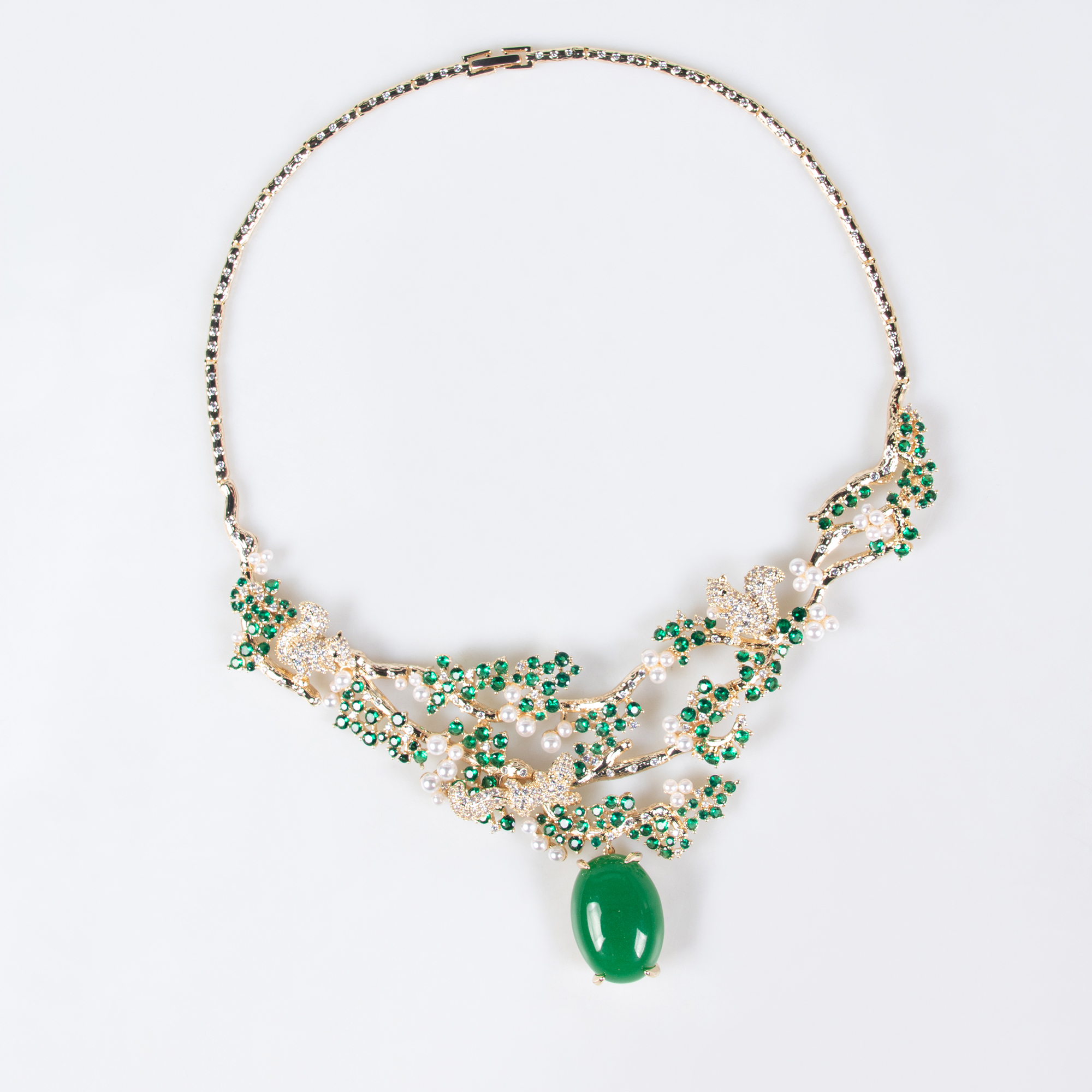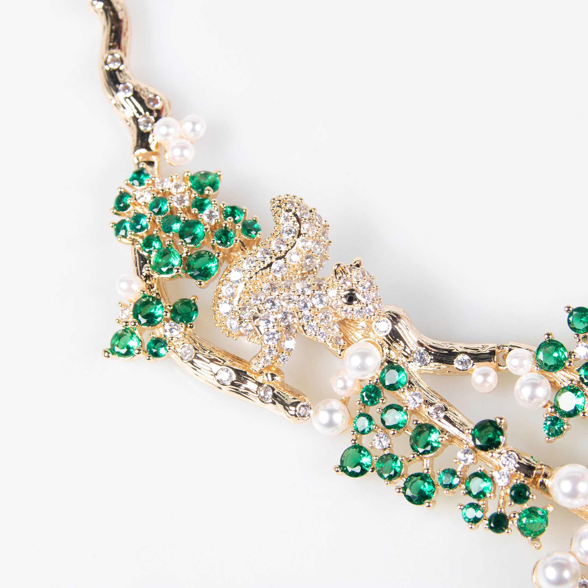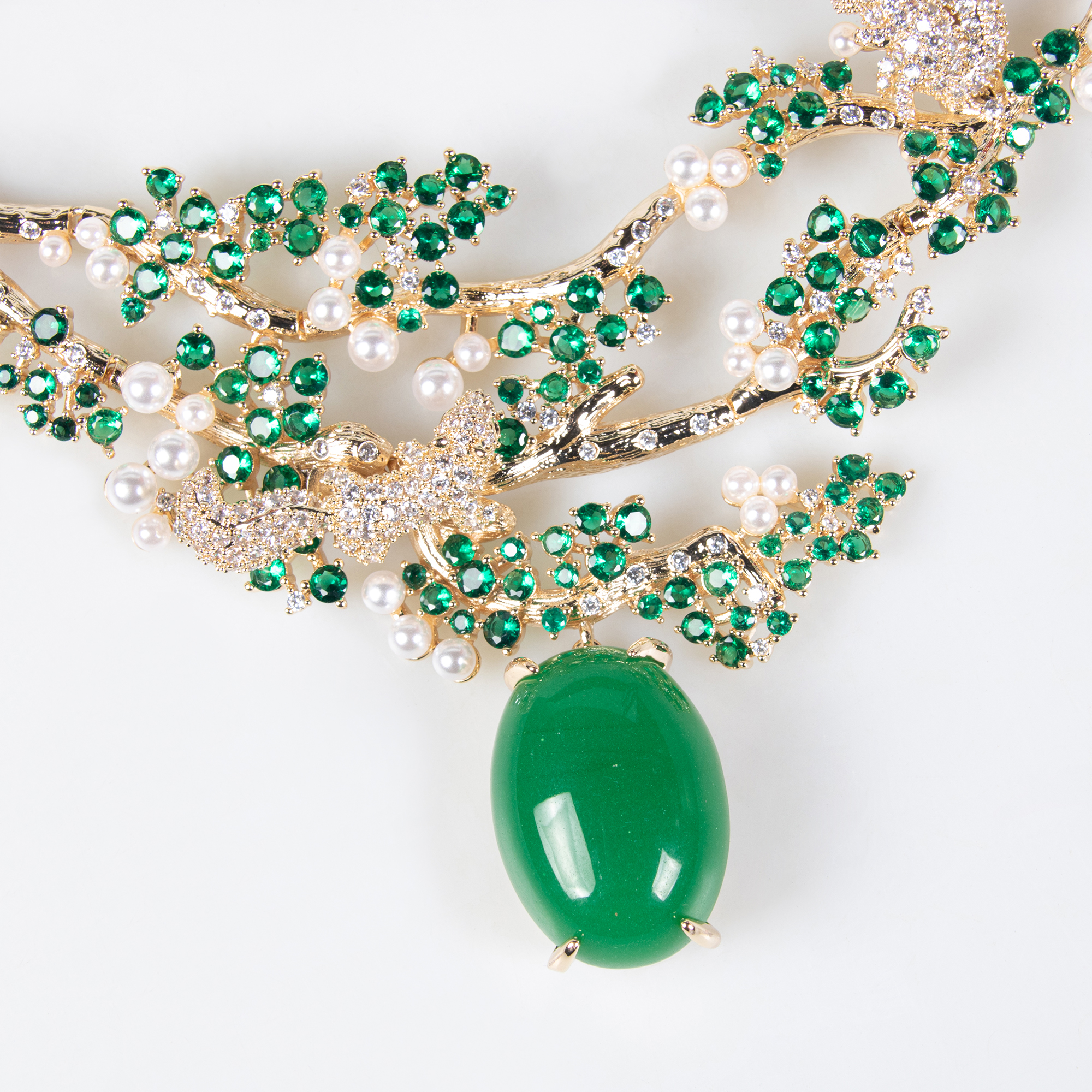 Ce collier ras-de-cou ovale en zircon, orné de perles et d'un motif de branches et de feuilles, se décline en plusieurs coloris et incarne l'élégance. Sa finition en cuivre plaqué or 18 carats rehausse son allure luxueuse, idéale pour les occasions formelles.