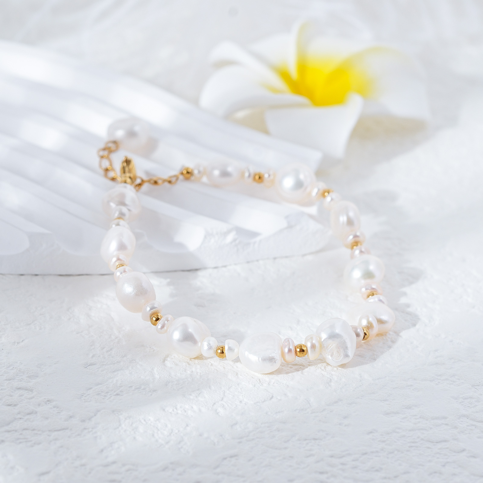Chaque bracelet est décoré de perles d'eau douce sélectionnées, offrant un éclat doux et une beauté naturelle. La combinaison de l'acier inoxydable et de la perle crée un look intemporel et élégant.