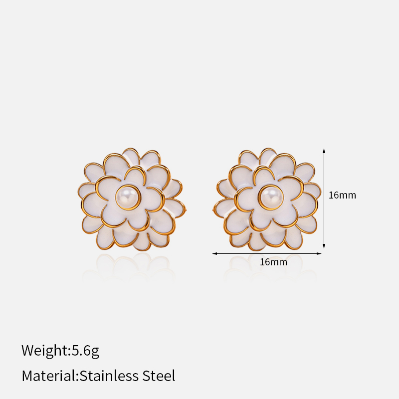 Ces boucles d'oreilles puces en acier inoxydable et émail blanc, ornées de fleurs, présentent un style floral minimaliste pensé pour la femme moderne. La pureté des pétales blancs leur confère une allure intemporelle et élégante, idéale au quotidien.