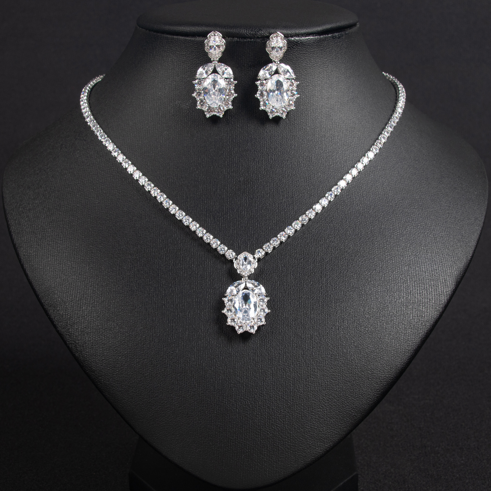 These wedding jewelry sets for brides feature brilliant oval gem detailing, inspired by classic formal wear. Each set includes a necklace and earrings, offering both elegance and comfort for wedding, banquet, or evening styling.