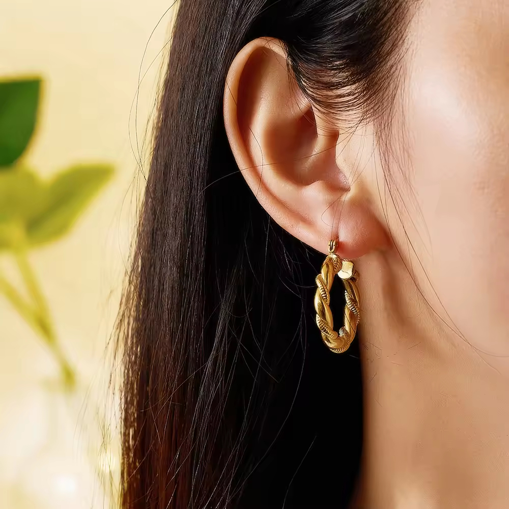 Bestselling Luxury Fashion 18k Gold-Plated Stainless Steel Twisted Round Women's Luxury Hoop Fashion Jewelry Earrings
