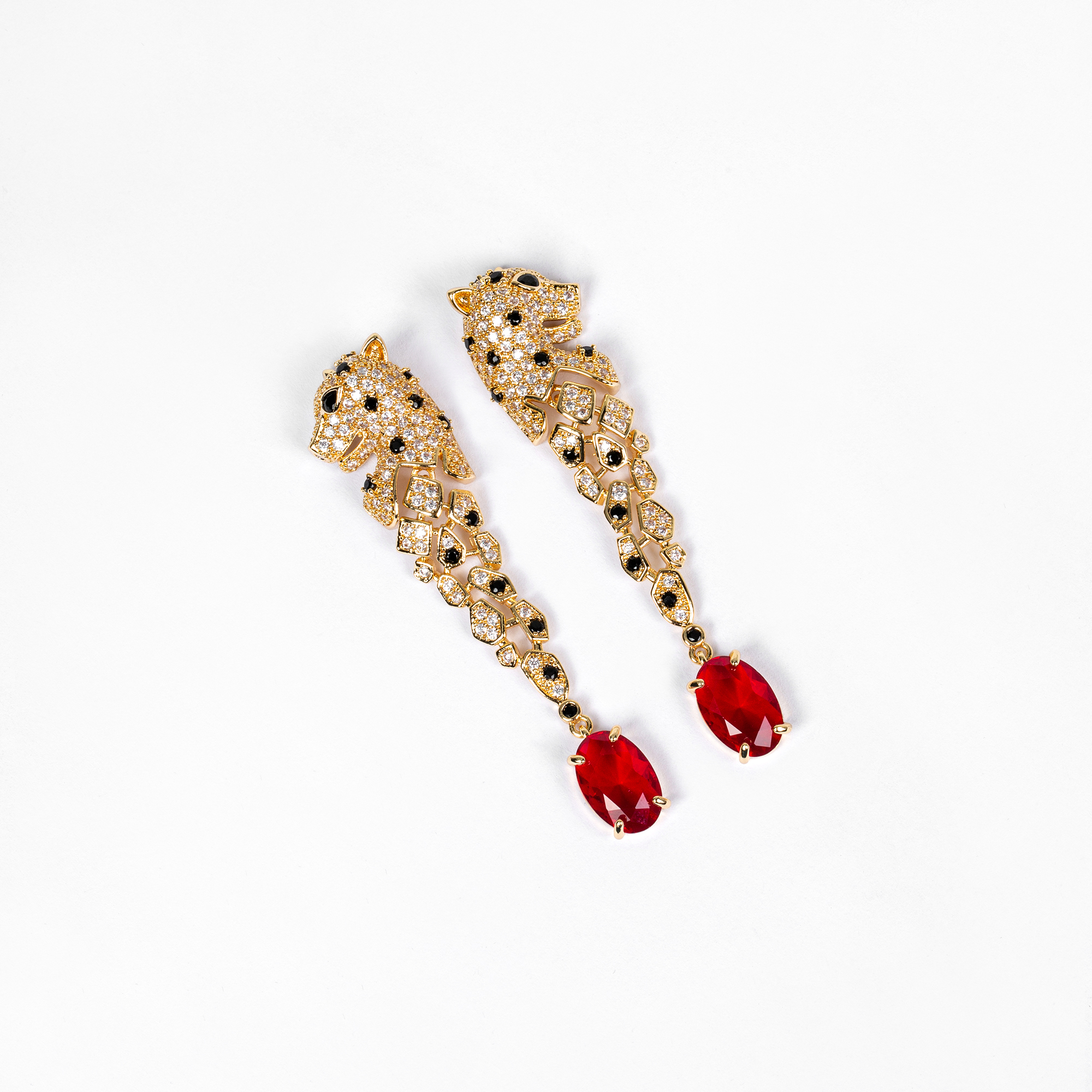 Lonceen presents a luxurious bridal 18k gold plated brass ornate leopard dangle jewelry set, crafted for brides seeking elegance and personality. Designed with precision, our jewelry showcases expert craftsmanship and timeless beauty.