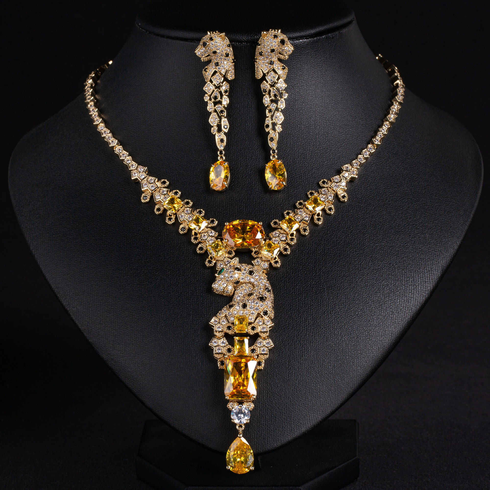 Featuring citrine leopard motif gems, this set reflects our commitment to quality. Its refined details embody the essence of premium jewelry sets and highlight Lonceen’s dedication to excellence.