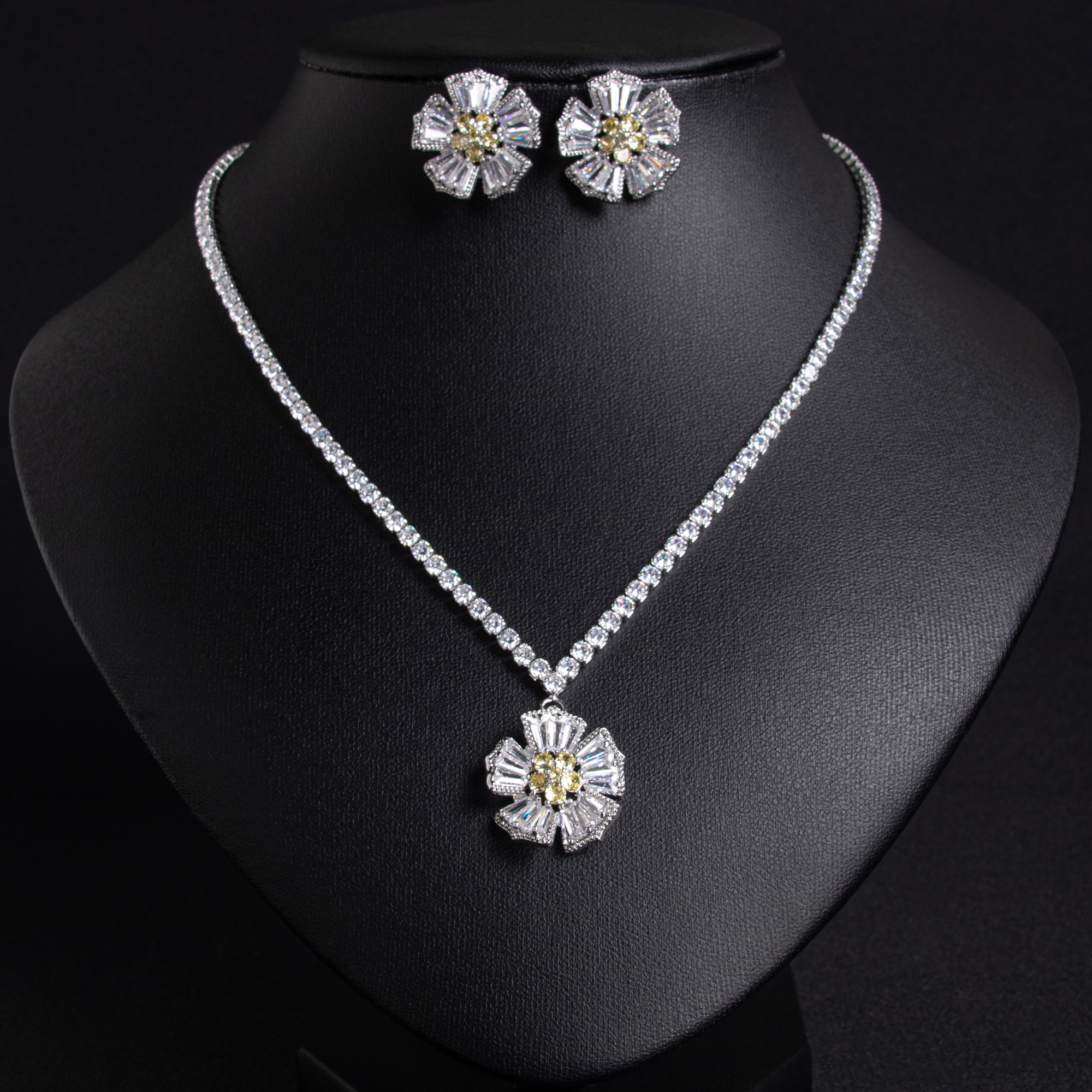 Lonceen presents premium wedding jewelry sets for brides, crafted to bring elegance and confidence to every special moment. Our 18k gold plated brass flower pendant necklace & earring set blends expert craftsmanship with timeless beauty.