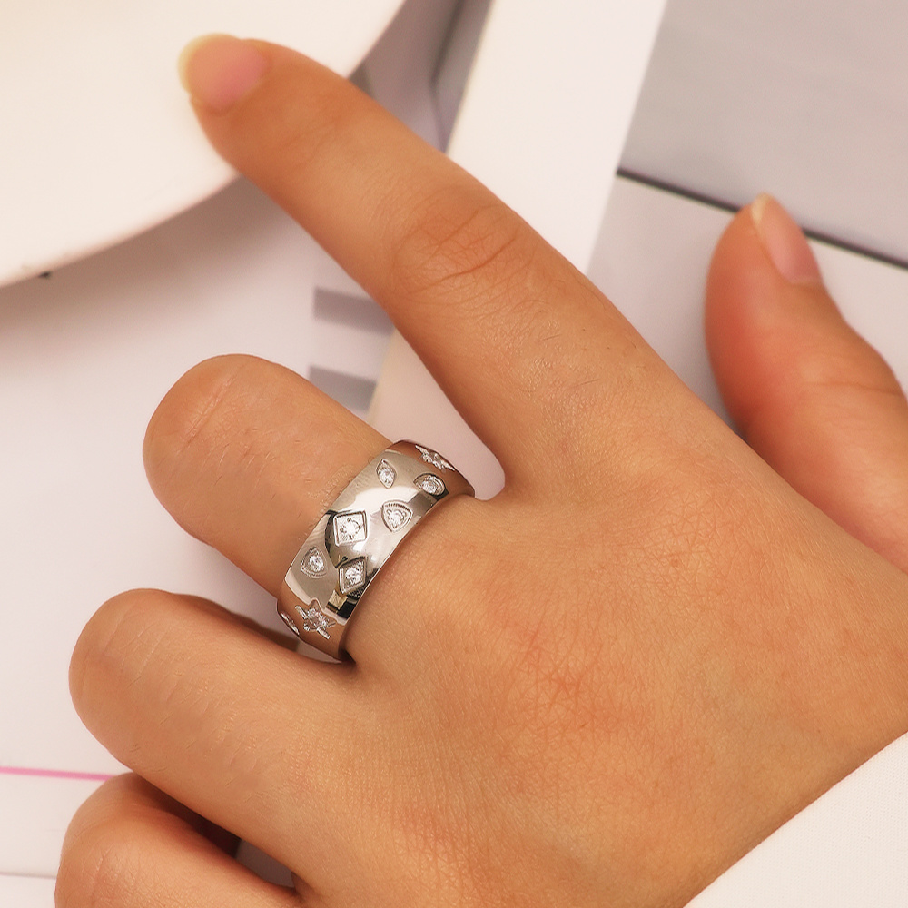 Equipped with an adjustable open design, the ring can be freely adjusted according to the size of the finger, perfectly fitting different finger circumferences of women. This design solves the trouble of inventory backlogs caused by multiple size specifications in wholesale, greatly improving the practicality and market adaptability of the product. It is easy to put on and take off, ensuring a comfortable wearing experience. The chubby and fashionable design is suitable for different age groups and various daily occasions, making it popular among consumers and conducive to promoting bulk sales.
