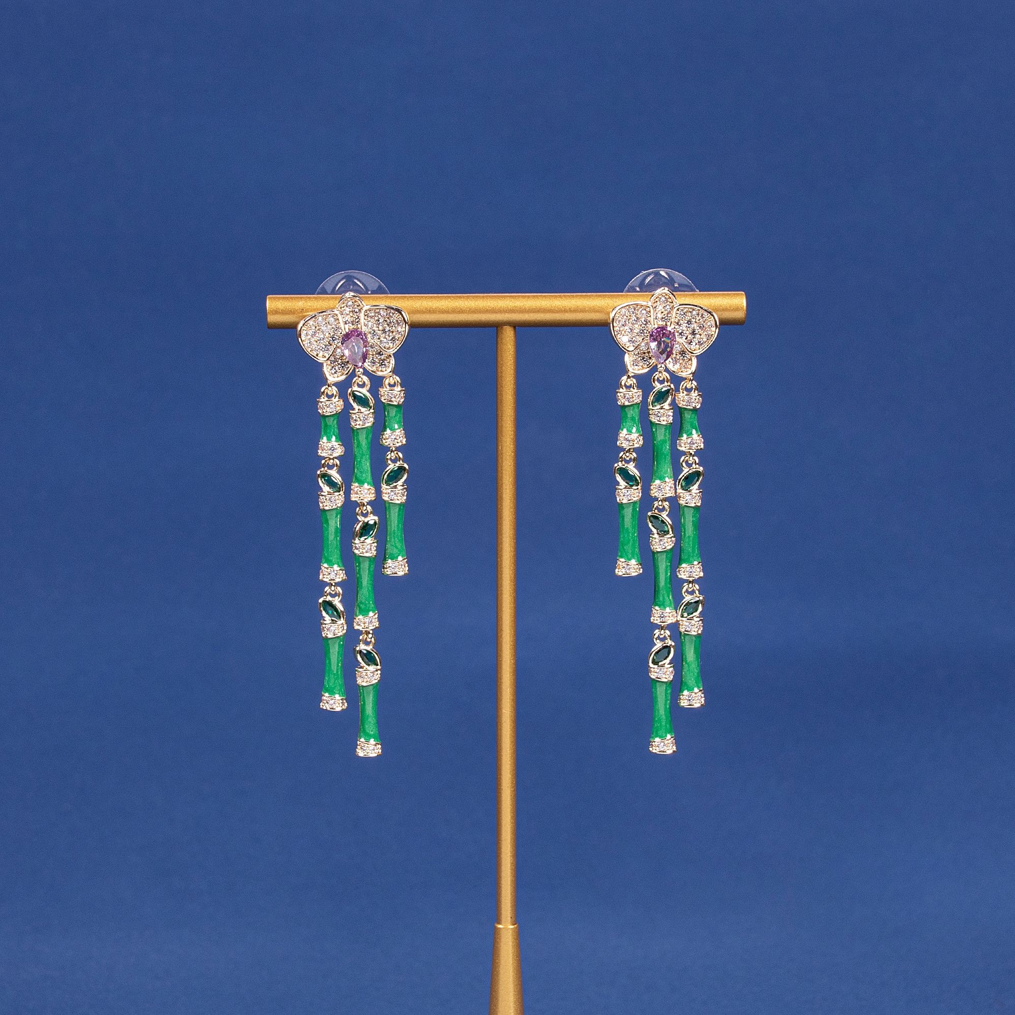 Lonceen presents elegant dangle earrings inspired by butterfly and bamboo elements. The long drop silhouette adds movement and sophistication for modern earrings for women.