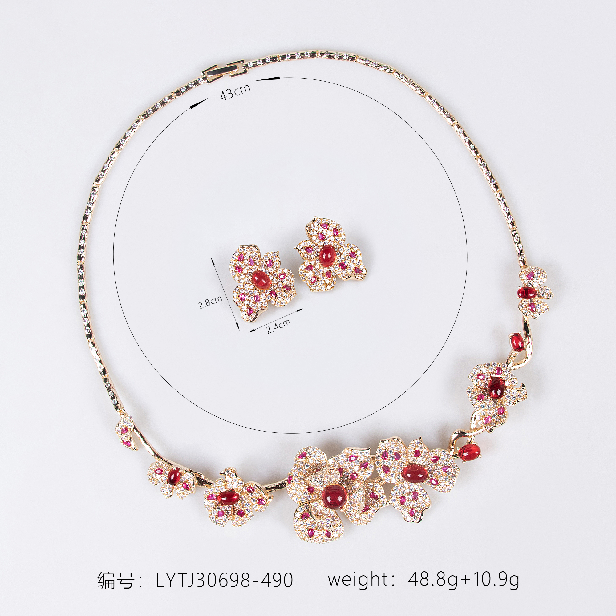 Lonceen presents a refined selection of wedding jewelry sets for brides, crafted with expertise and attention to detail. This elegant 18k gold plated brass multi-petal floral gem necklace set embodies luxury while maintaining comfort and durability.