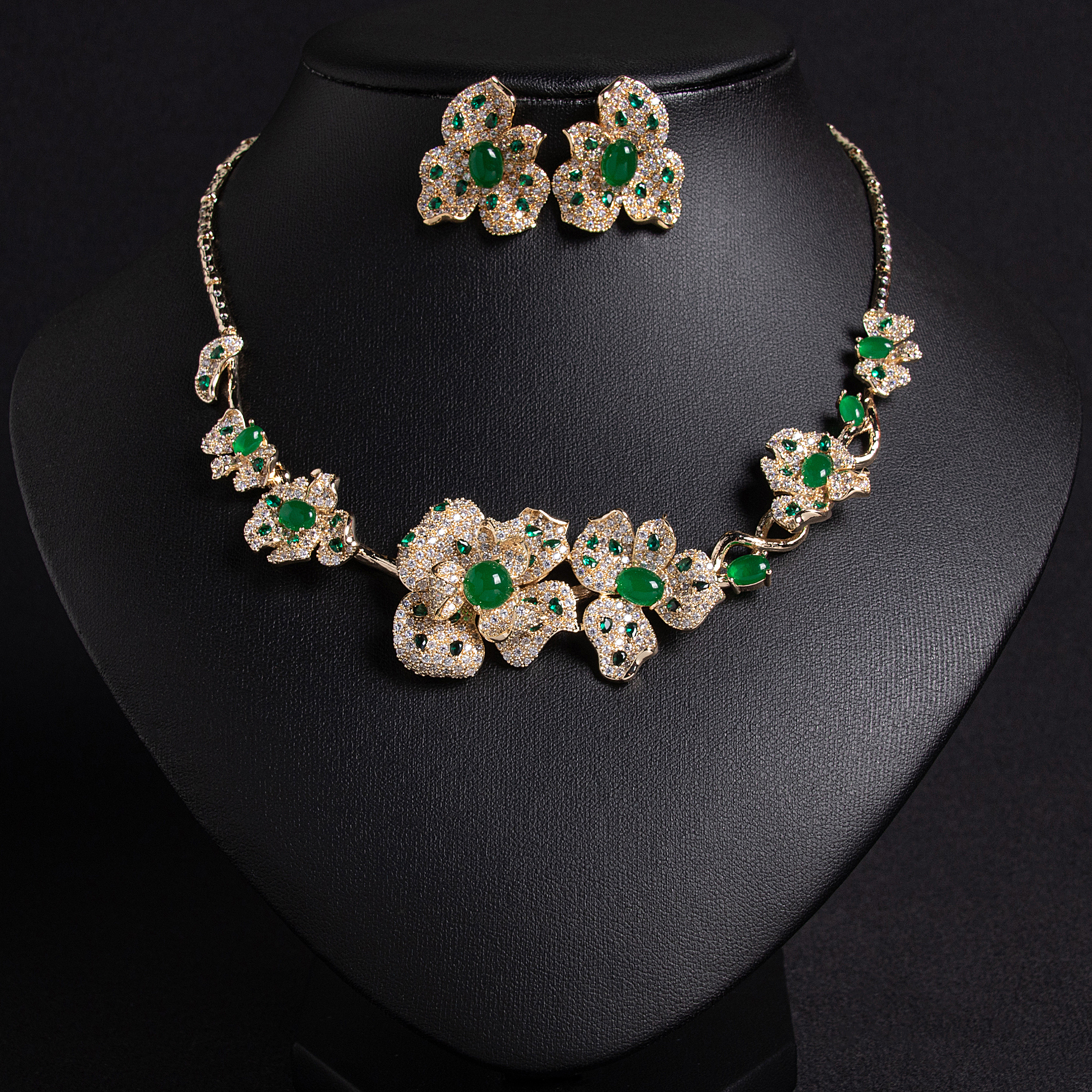 Featuring brilliant emerald and yellow-purple gems, this set echoes the beauty of our long-tail style Elegant 18k gold plated brass floral gem collar set (hypoallergenic, tarnish resistant). Each piece is designed to resist tarnish and remain gentle on the skin.