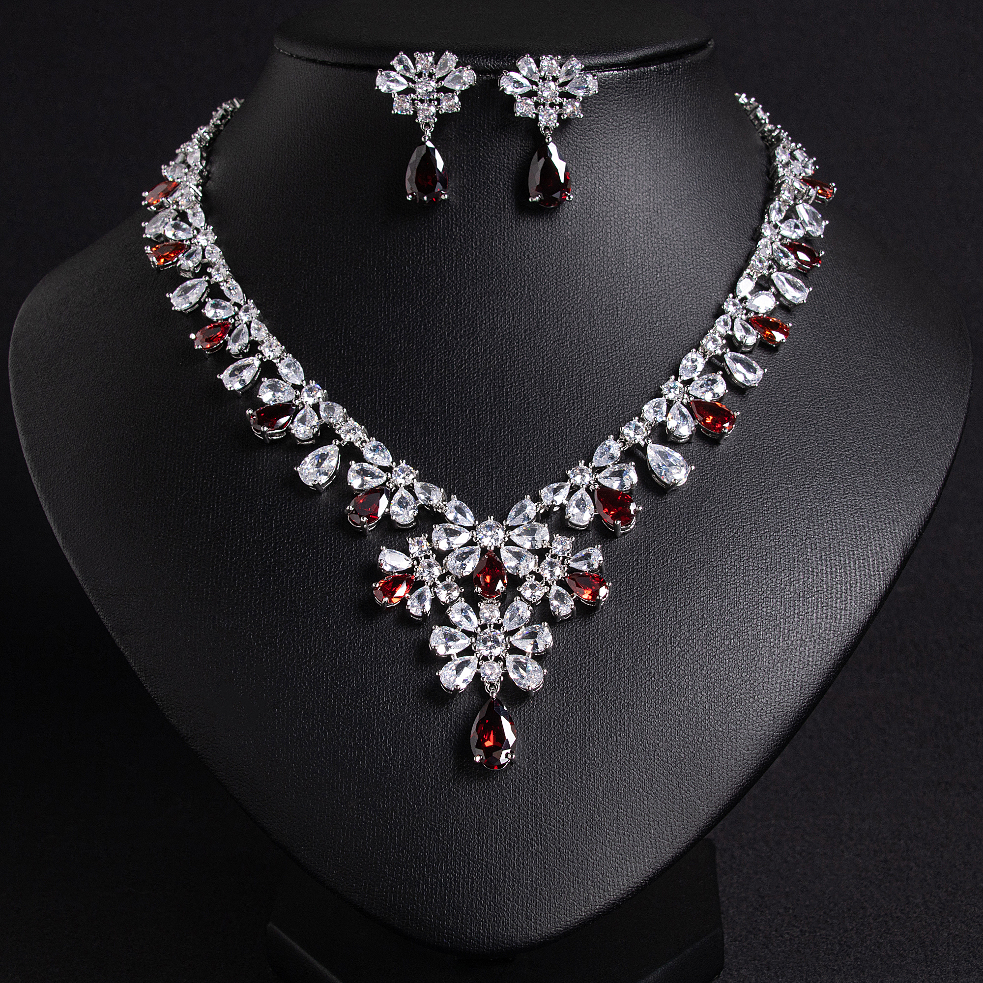 As part of Lonceen’s professional bridal jewelry sets collection, this bridal 18k gold plated brass red garnet floral teardrop jewelry set enhances every bridal look with luxurious sophistication. It also makes a meaningful gift for her at evening banquets or special celebrations.