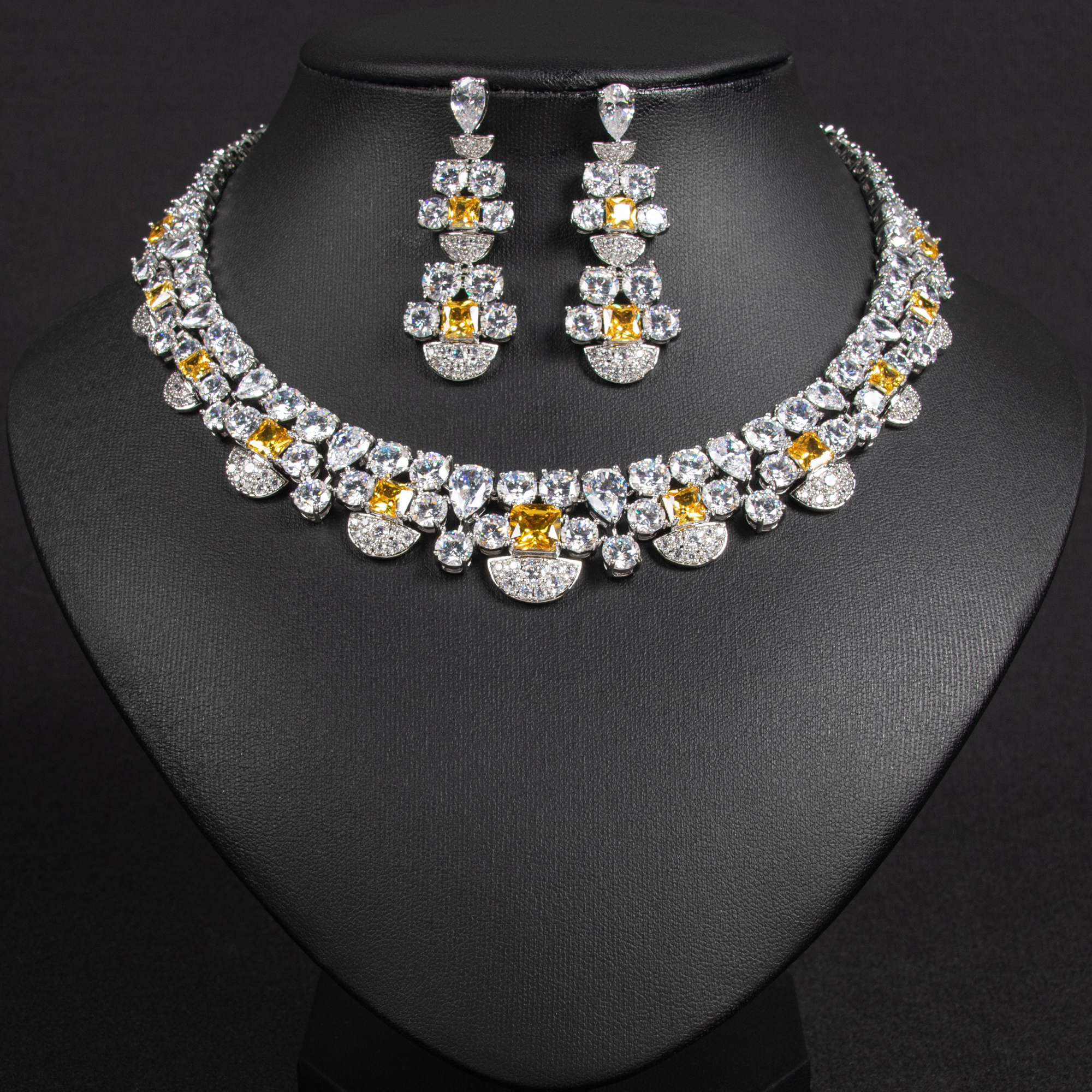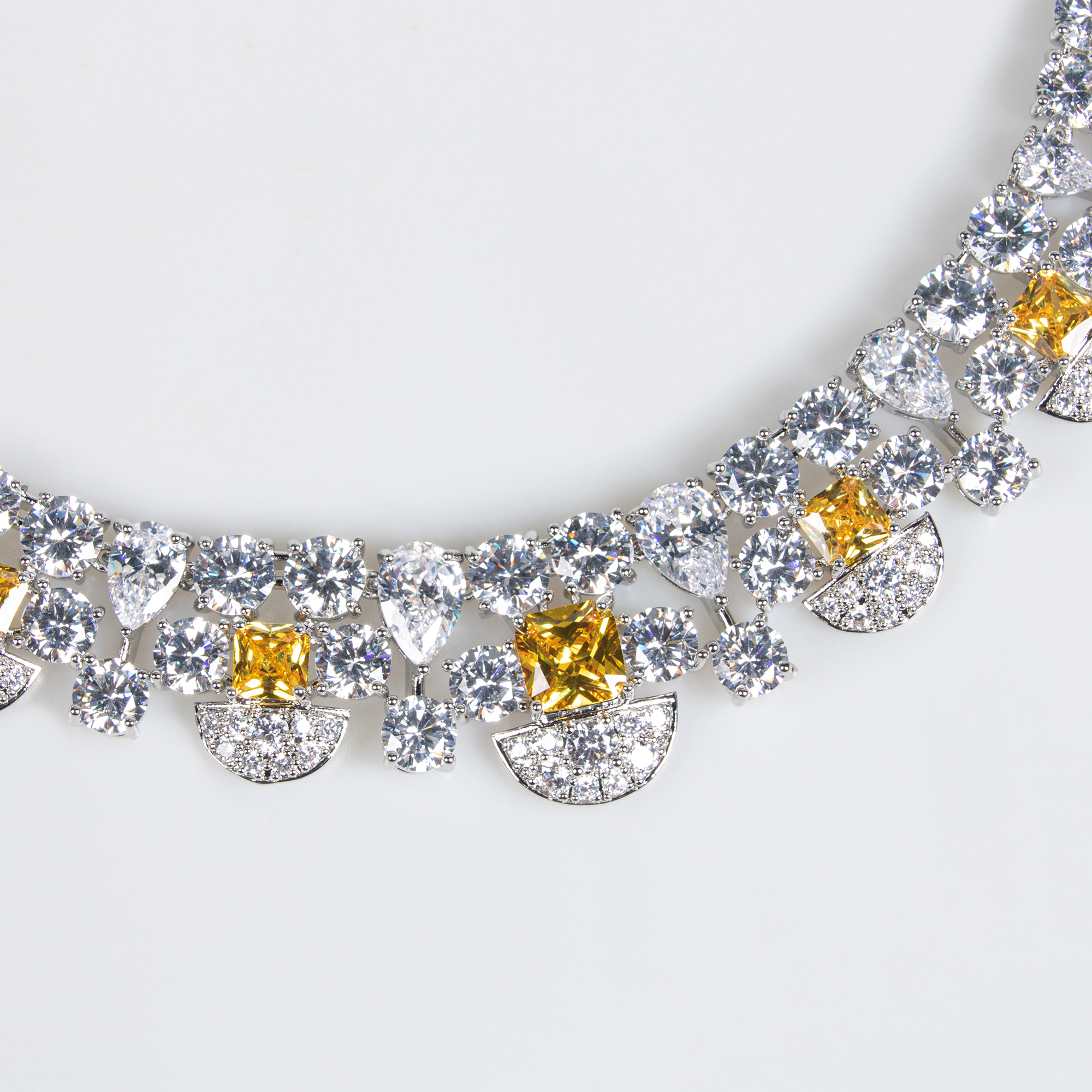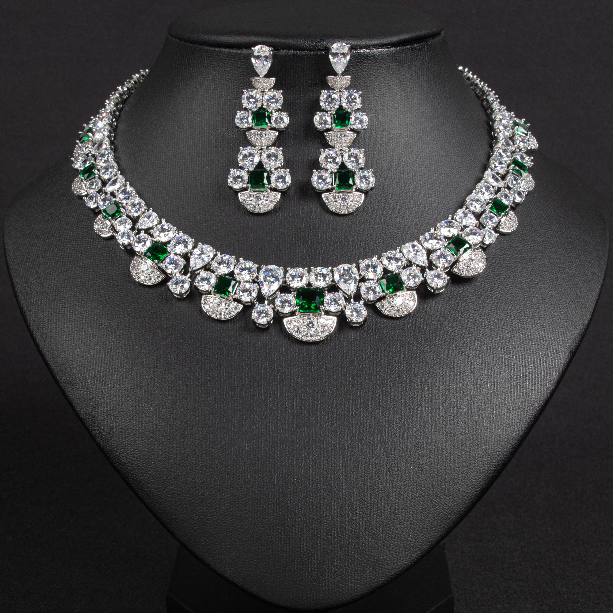 Beyond weddings, women can enjoy this 18k gold plated brass square gem collar jewelry set for everyday elegant occasions. Its timeless geometric style offers both sophistication and versatility.