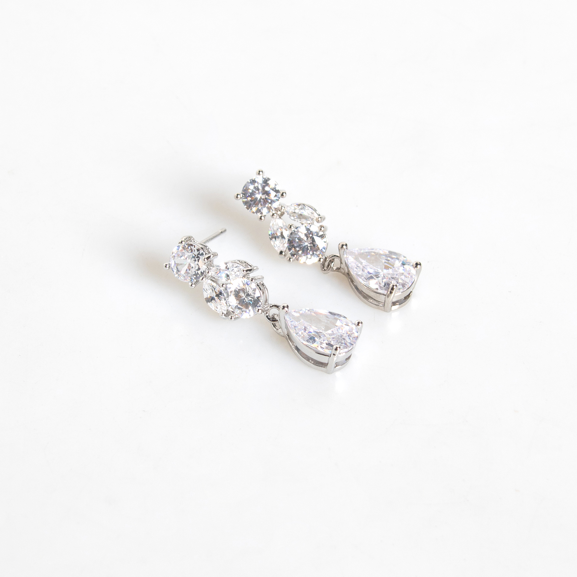 Lonceen presents an elegant 18k gold plated brass multi-teardrop floral crystal necklace set crafted for wedding jewelry sets for brides. Its delicate floral and teardrop elements create a refined bridal look.