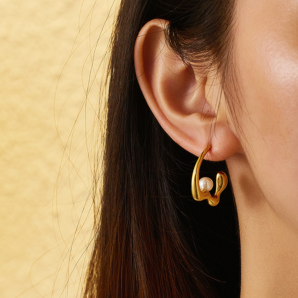 Elegant and minimalist stainless steel 18k gold-plated natural symphony fashion jewelry earrings for ladies