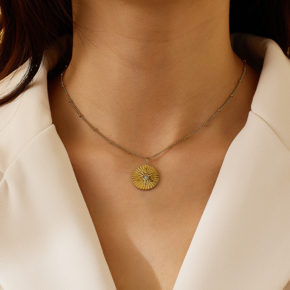 Crafted from high-grade 304 stainless steel with a thick, uniform 18k gold-plated coating, this women's necklace boasts exceptional tarnish resistance, scratch resistance, and long-lasting luxurious luster. The gold-plated layer retains its warm, glossy sheen without peeling or fading, even with prolonged daily wear, and the stainless steel base forms a dense protective oxide film to prevent discoloration and deformation. The octagonal star charm is firmly welded to the chain, and the custom coin pendant is secured via a sturdy bail, ensuring the necklace remains intact during daily activities and maintains its high-end appearance for years.