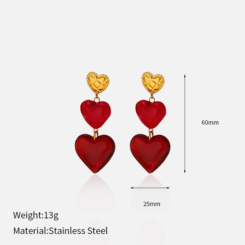 These stainless steel heart earrings feature a striking gold and red heart pendant design. Created for women who love bold yet elegant accessories, they elevate both daily and party looks.