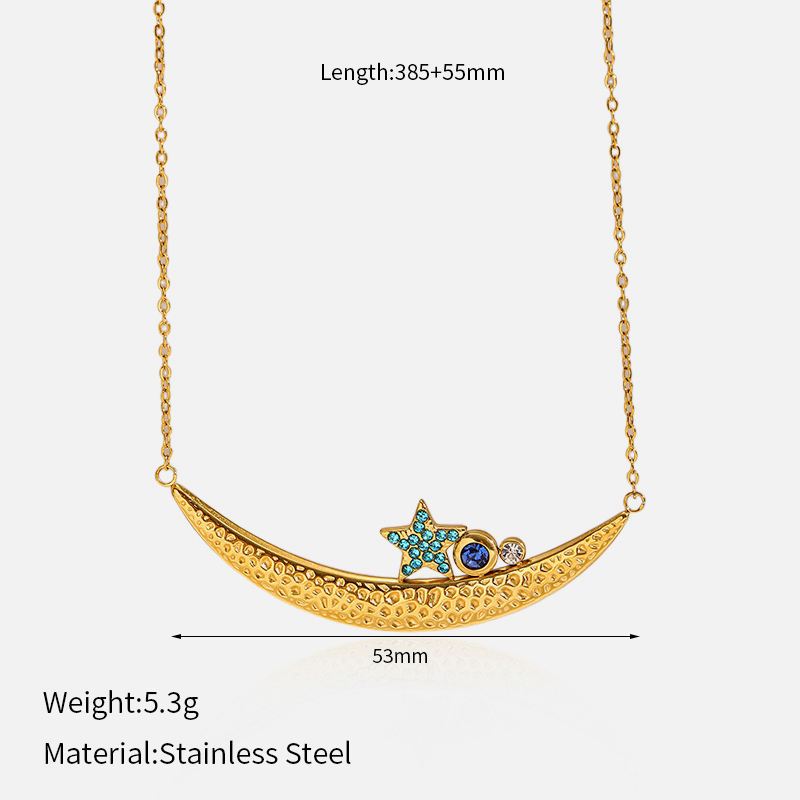This gold stainless steel necklace for women features a refined moon and star design. The smooth finish and balanced shape create a modern and fashionable stainless steel necklace.