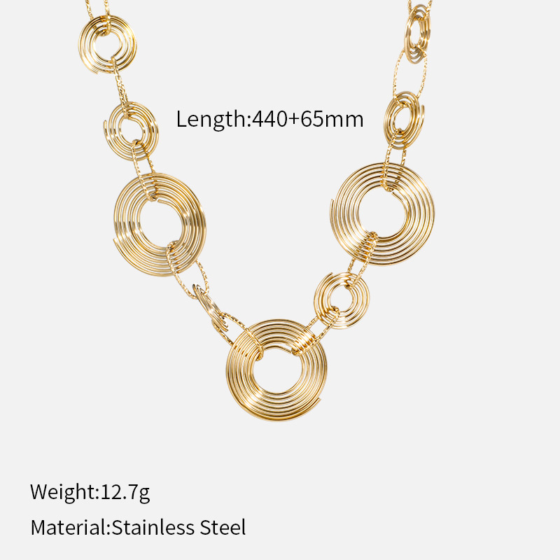 Lonceen presents this gold stainless steel circle necklace with a multi loop geometric structure. The design reflects modern fashion while remaining elegant for everyday wear.